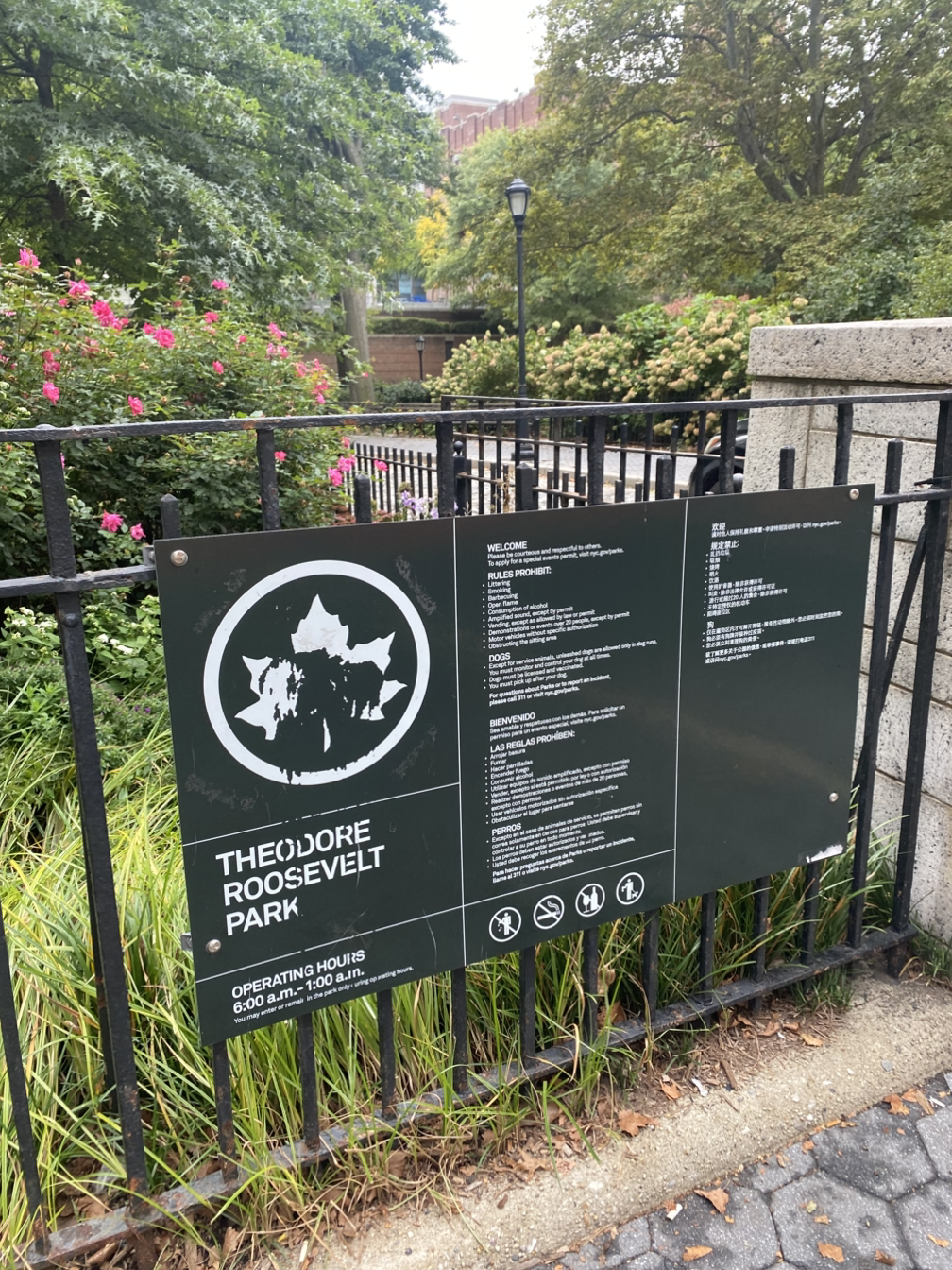 자연사 박물관 정문이 아니라 후문? 쪽에 내리면 Theodore Roosevelt Park가 있다.