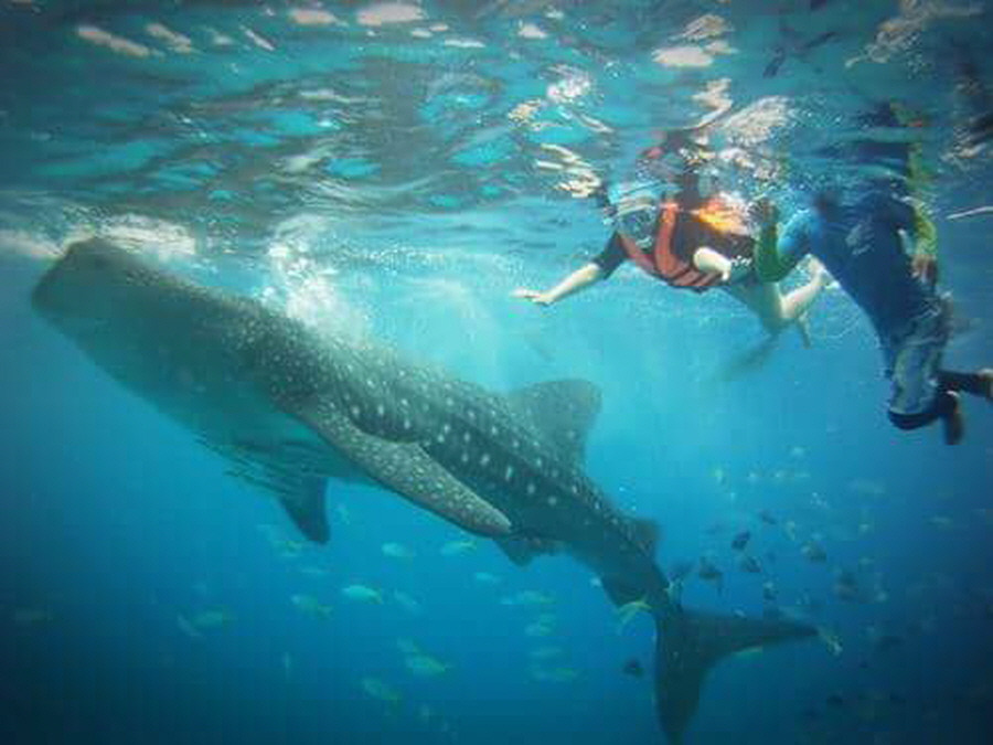 포인트에 도착하면 물속에서 고래상어들과 30분 정도 함께 물놀이를 할 수 있다.