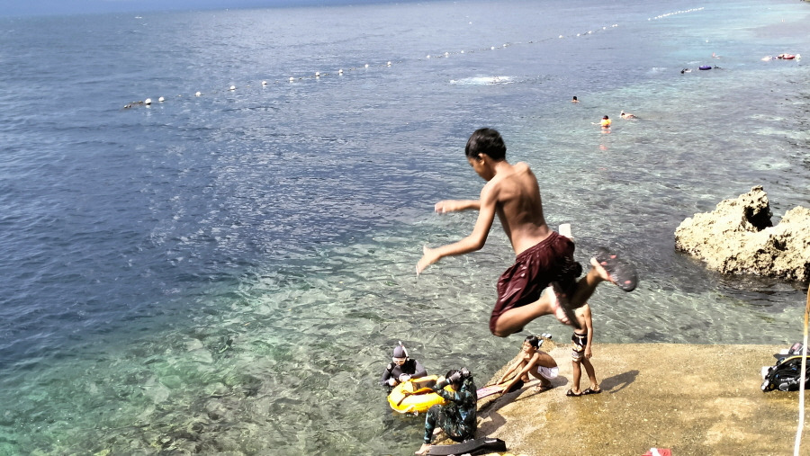 이쪽 지역에도 고래상어가 많이 살다 보니 사람들이 먹이로 유도해서 지금은 꽤 많은 숫자가