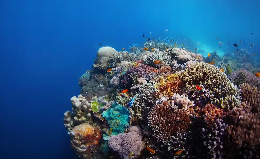스노클 장비를 하고 포인트로 들어가면 먼저 아름다운 산호초에 놀라고 두 번째로 정어리 때 무리를 보고