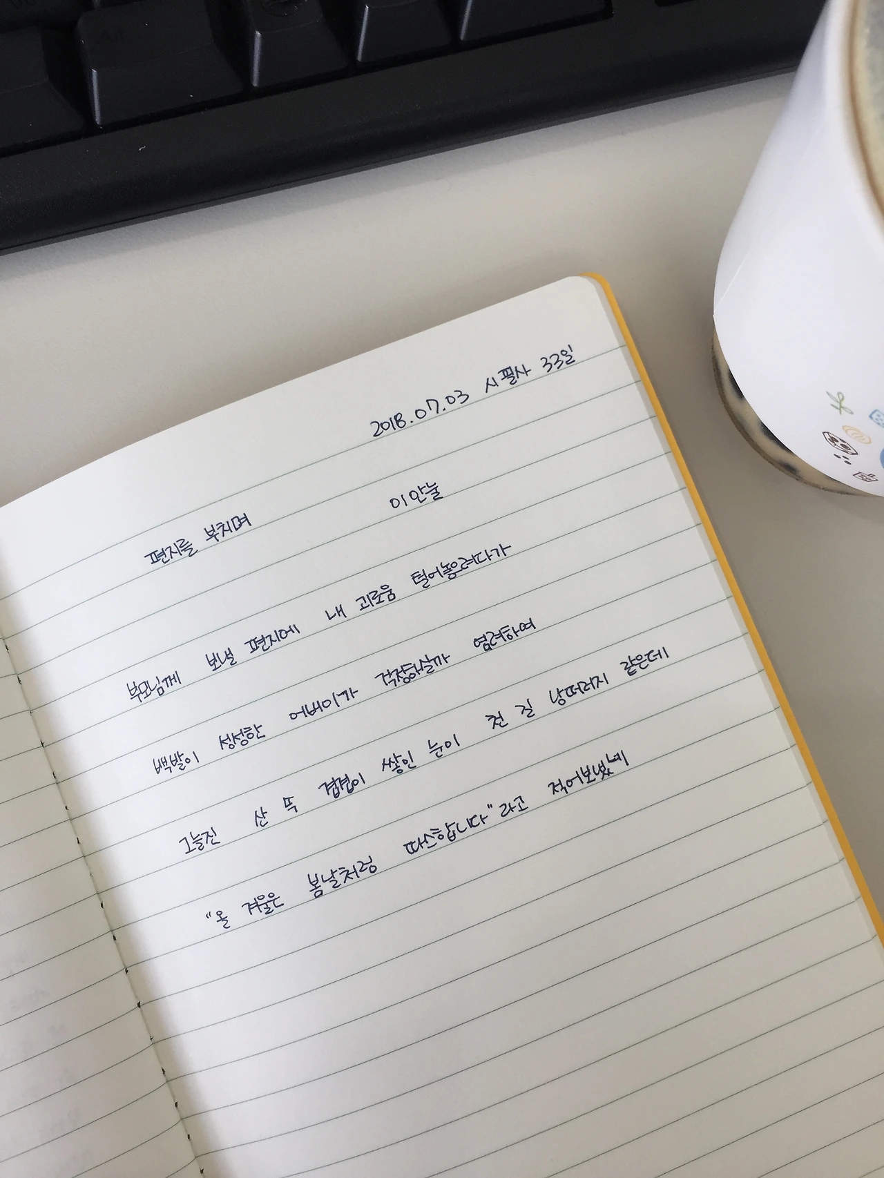 오늘은 틀린 글자 없이 써내려나 했는데...