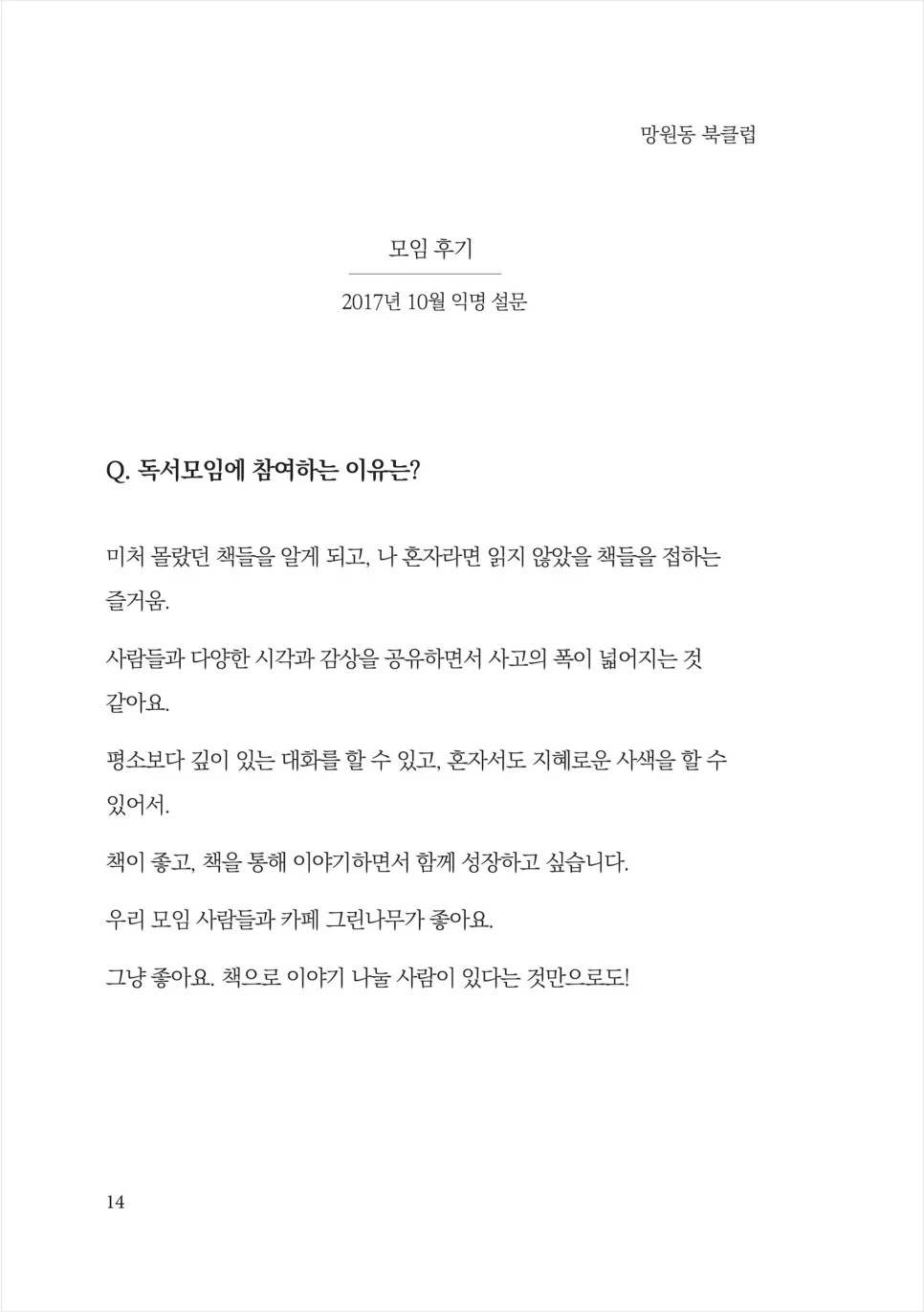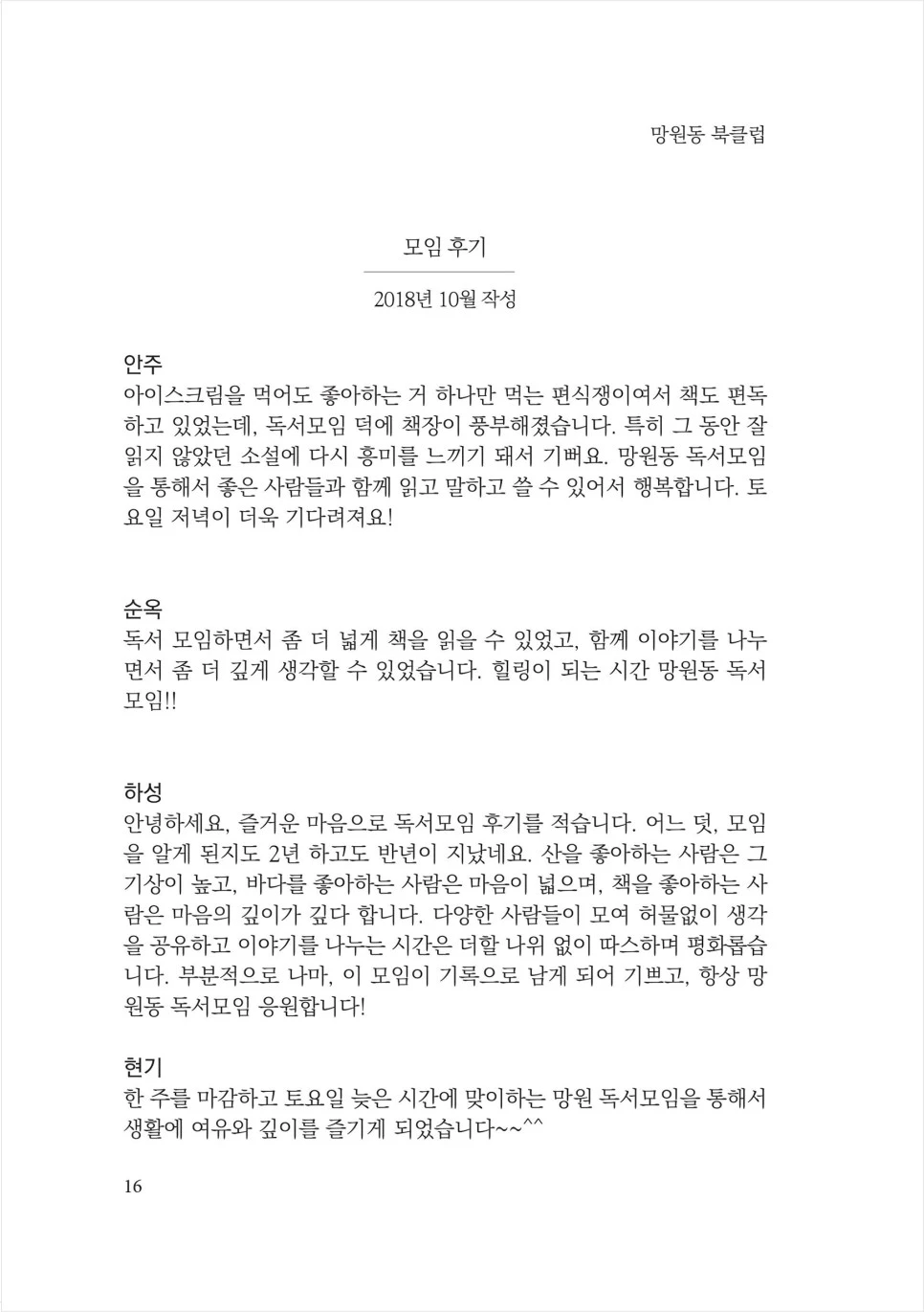 글 쓰는 독서모임, 망원동 북클럽의 첫 문집 소개합니다.