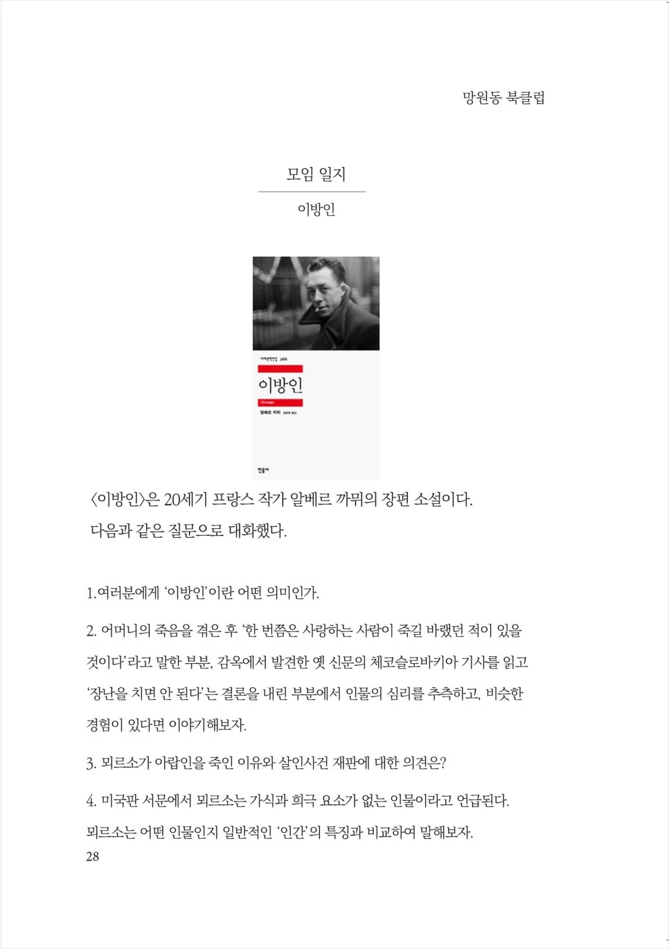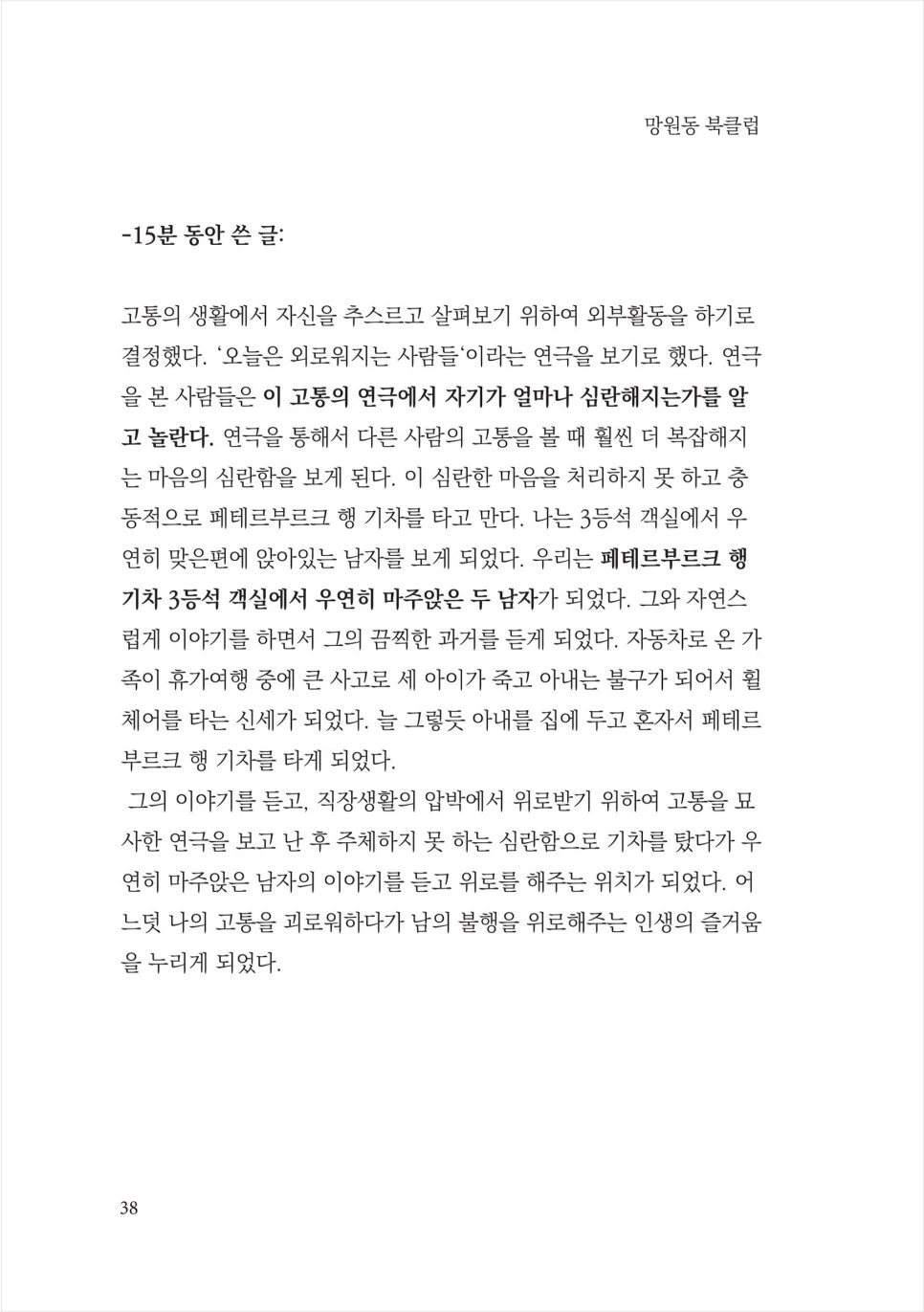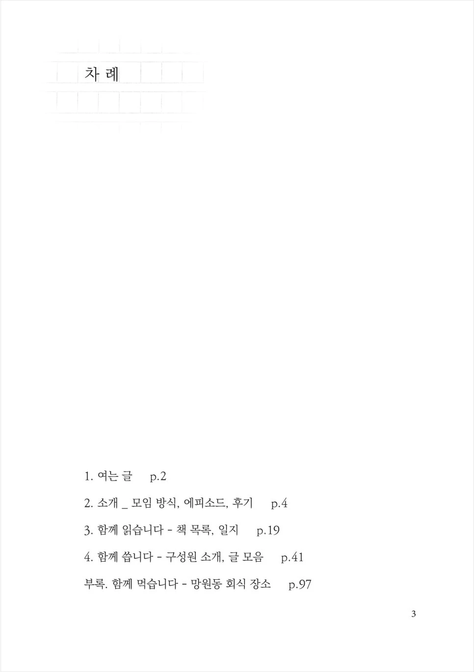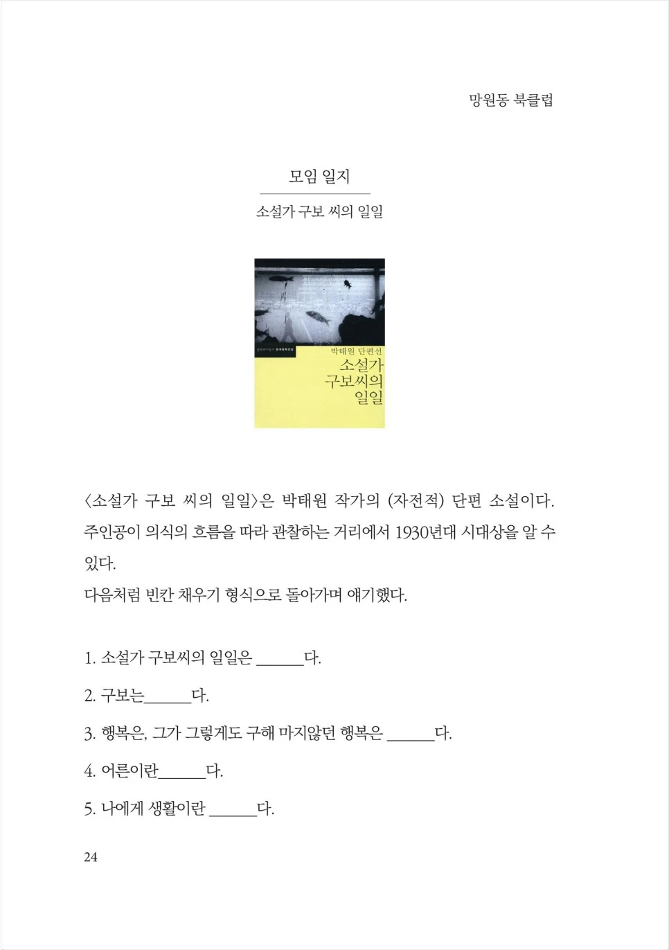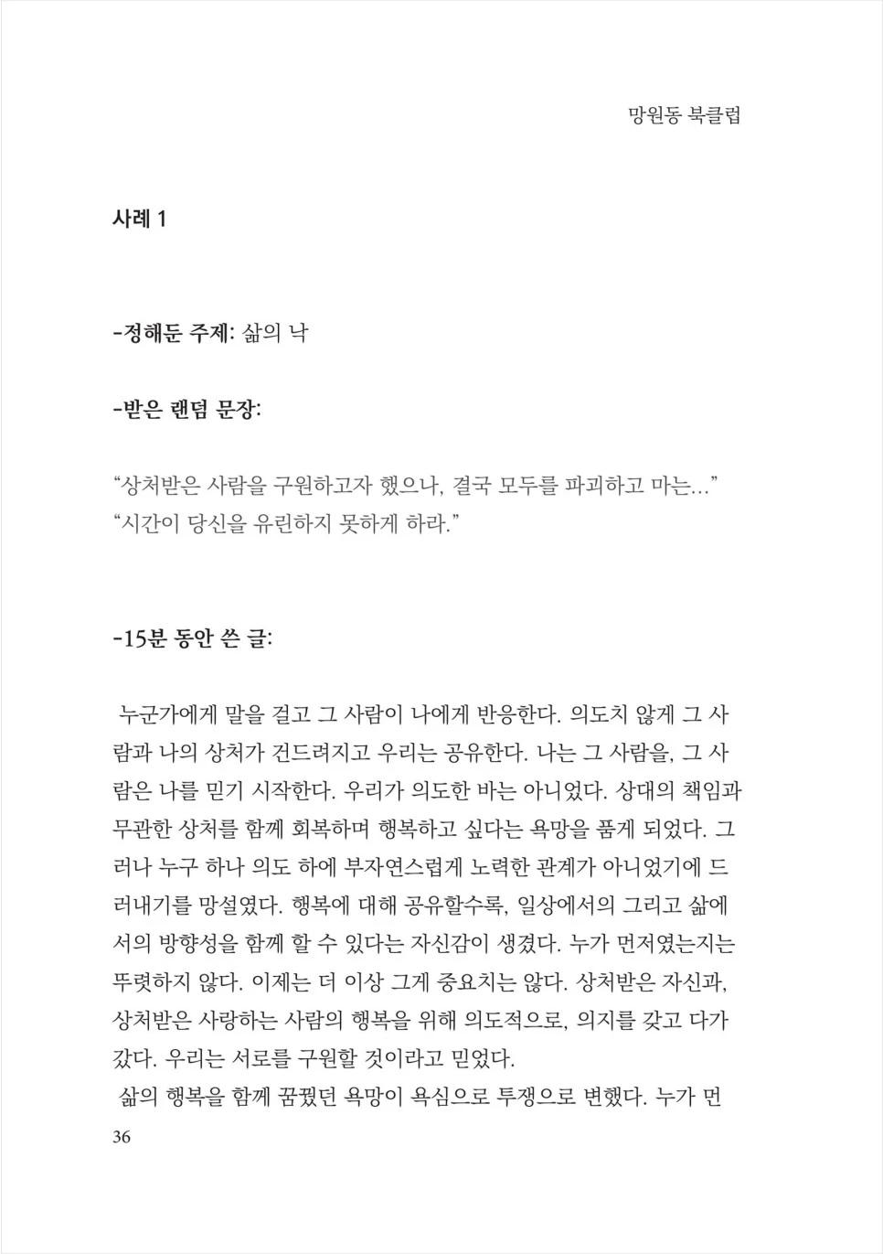 글쓰는 독서모임, 망원동 북클럽의 문집을 소개합니다.