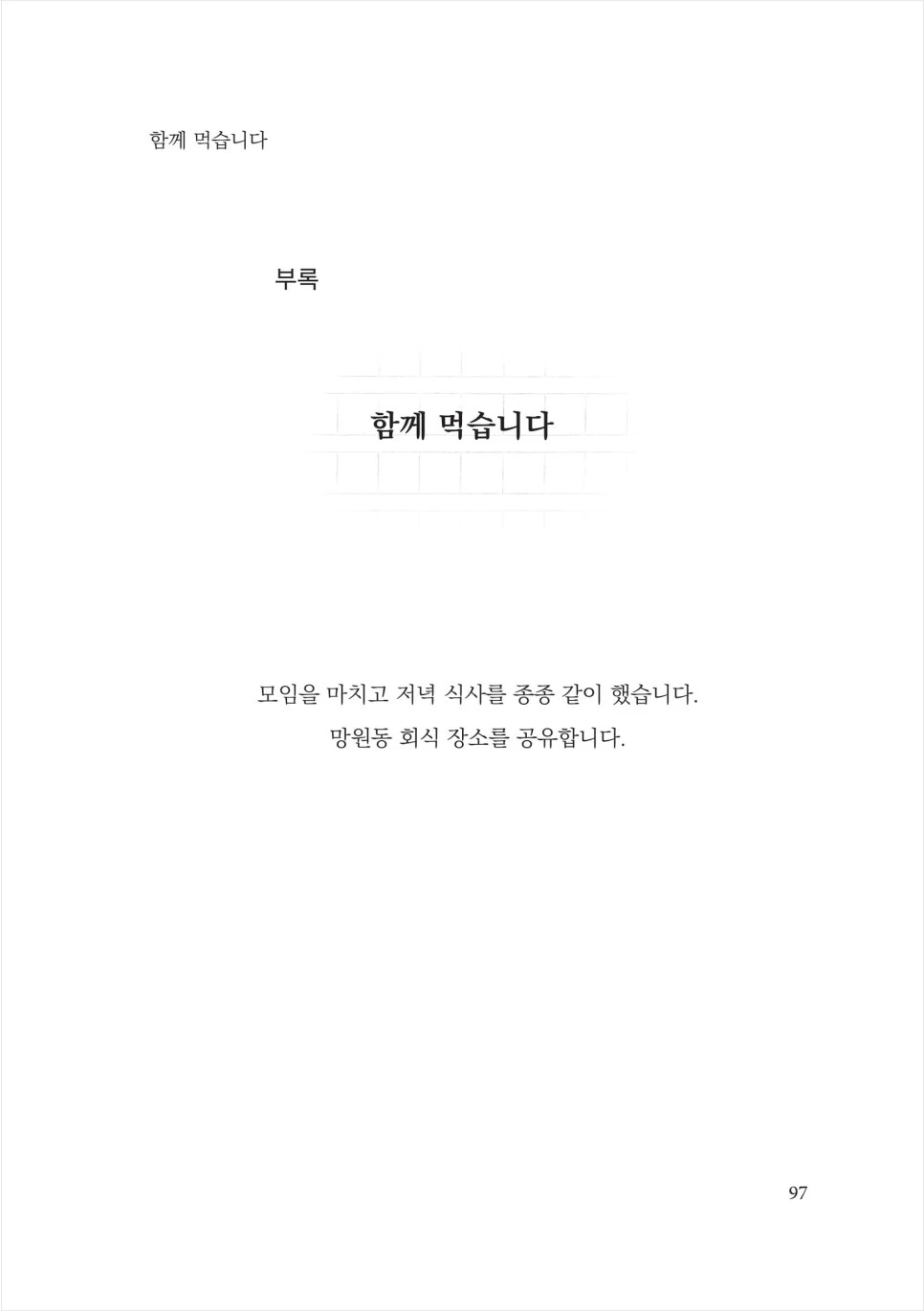 '3장. 함께 씁니다' 마지막 부분과, '부록. 함께 먹습니다' 부분을 올립니다.
