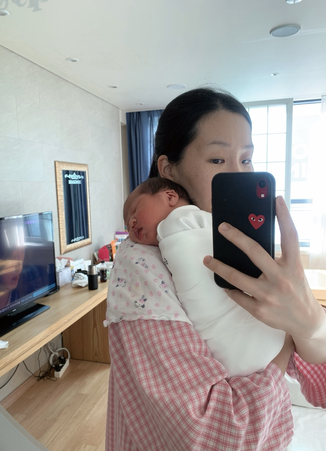 다행이 회복 속도는 빨랐고 나는 금새 일어나 이리저리 걸어다녔다. 아기를 보고 싶었지만, 아기를 보는 시간도 병원에서 정해주었다. 수강신청을 하는 것처럼 아기를 볼 시간을 예약했고 10분 전부터 앞에 서 있었다. 하루에 5분 아기를 유리창 너머로 구경했다. 아기도 나처럼 퉁퉁 부어 있었다. 아기를 구경하는 5분 동안 내내 자고 있어서 아쉬웠다. 내 아기인데 만지지도 못하게 하고 보지도 못하게 하는 병원 시스템에 구시렁거리며 병원에서의 4박 5일을 보냈다.