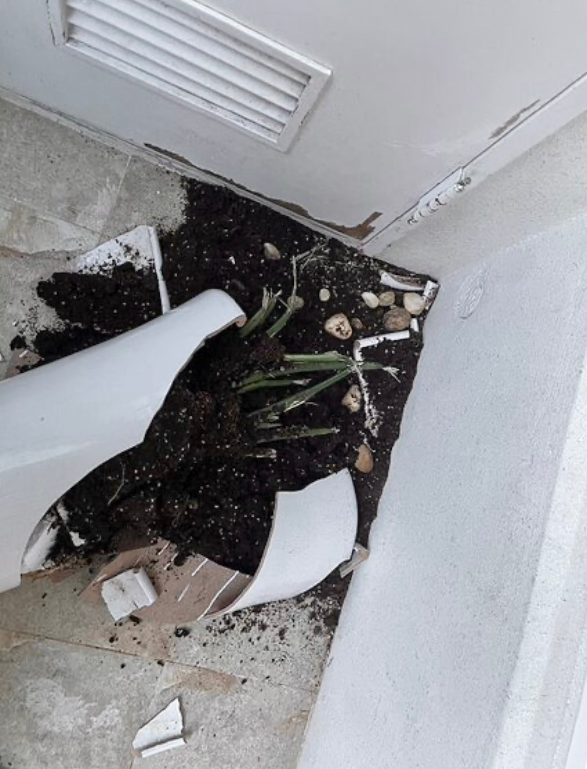 말 그대로다. 집 안에 존재하는 목조로 된 각종 가구와 인테리어 프레임들은 레트리버의 이갈이용 개껌에 불과하다. 콘크리트도 뚫는 녀석의 모습을 보고 난 이후 아끼던 원목 테이블이 점점 작아져 사라지는 것을 발견하고도 그리 큰 충격을 받지 않았다. 그런 나라도 목조로 된 발코니 창틀 프레임이 쪼개져 너덜거리고 있는 것을 목격한 순간에는 마음속 깊은 탄식과 함께 익숙한 분노가 치밀어 오르는 것을 막을 수 없었다. 어디 창틀에 그칠 것인가. 빙문과 문지방, 걸레받이 등 목조로 된 모든 구조물들은 그의 이갈이용 개껌이 되었다. 우리 가족은 그의 이갈이가 끝나는 시기까지 집안 곳곳의 구조물이 사라지는 장면을 넋 놓고 지켜볼 수밖에 없었다. 그러니 집에서 화분을 가꾸는 것은 거대한 판타지에 가까운 일이었다. 싱크대 상판에도 너끈히 닿는 그들의 앞발에 버텨 나갈 화초가 무엇이 있을까? 평화롭고 초록초록한 집은 레트리버에게 거대한 도시락일 수밖에 없음을 여러 화분을 떠나 보내고 나서야 받아들일 수밖에 없었다.