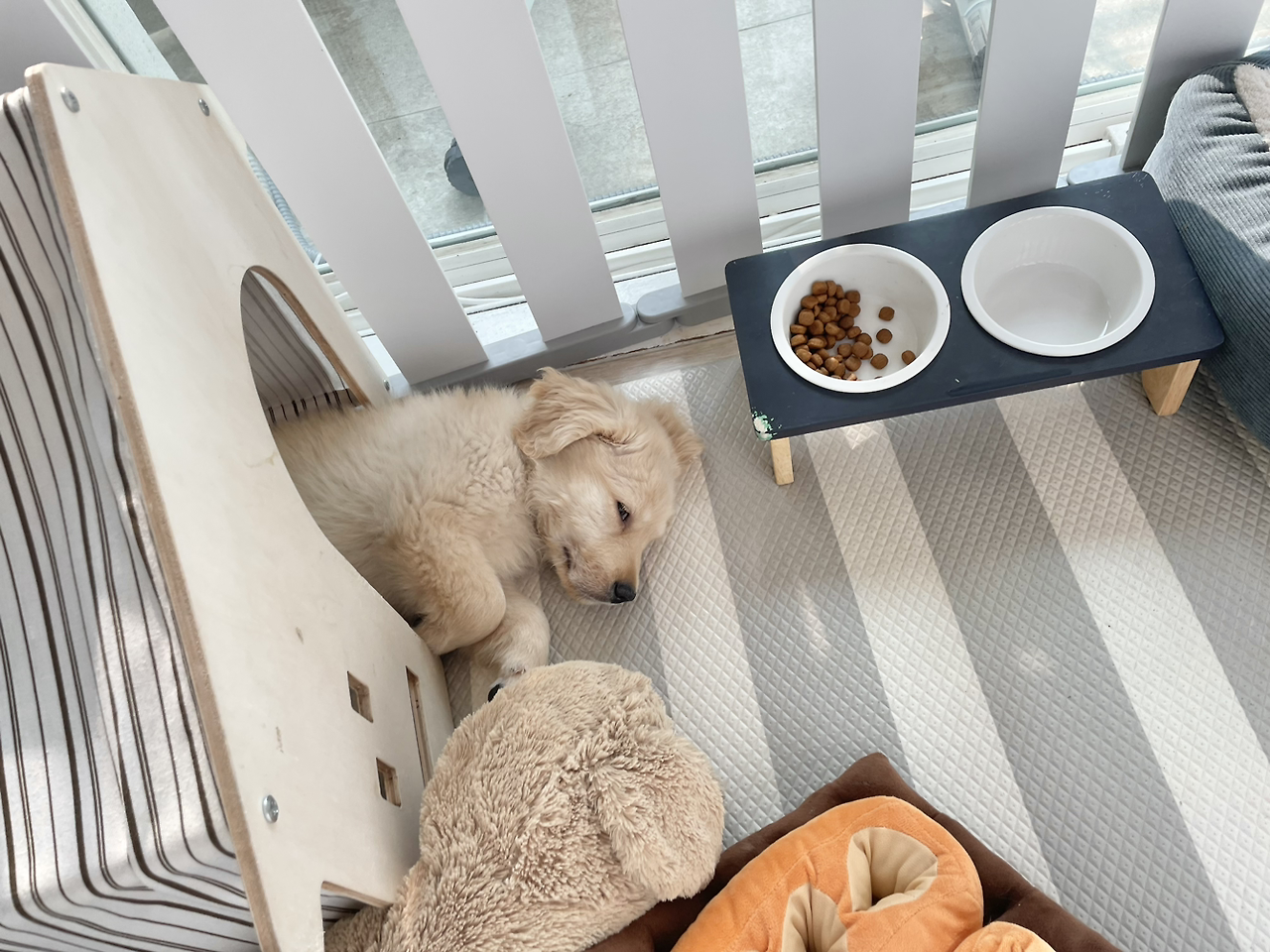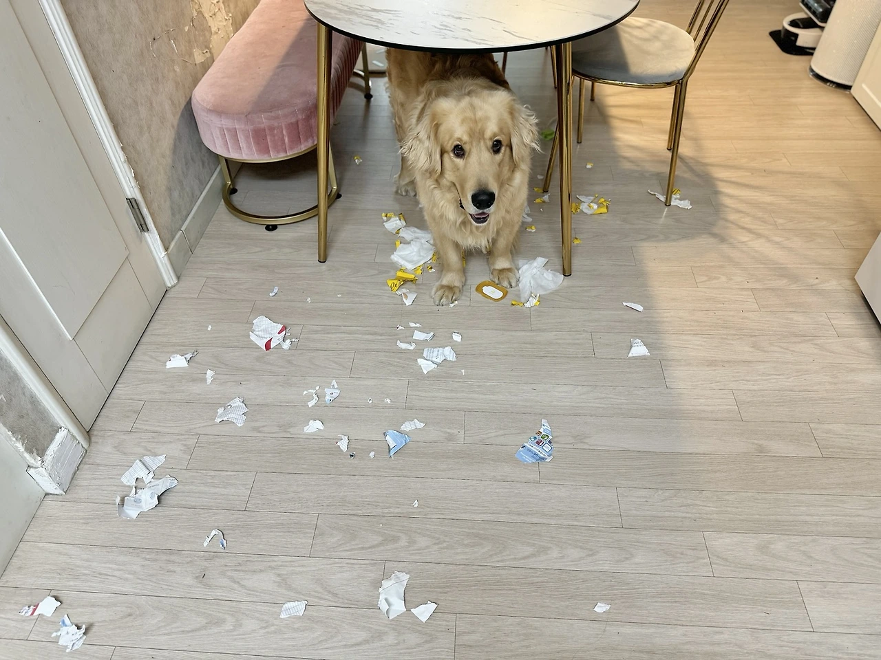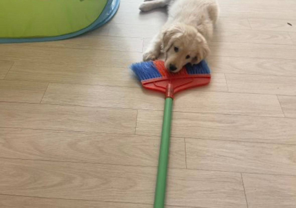 찹쌀떡 같았던 아기 레트리버는 1년 6개월 동안 무럭무럭 성장했다. 앙증맞은 앞다리를 쭉 뻗어 올려도 30센티가 채 되지 않던 아기 시절을 보내면 하루가 다르게 쑥쑥 자라나 앞다리를 뻗으면 식탁 위에, 싱크대 상판 위에도 올라설 수 있는 성견이 된다. 이제 그의 놀이터는 소파나 테이블 위가 아니다. 웬만한 높이의 서랍장 위, 싱크대 위에 있는 각종 소품과 아이들의 장난감, 소형 가전, 먹거리, 쓰레기들은 이제 그의 사정거리에 들어오게 되고 깔끔하게 치워 놓고 바이바이 작별했던 집이 음식물 쓰레기와 아이들의 간식거리, 아기자기한 인테리어 소품들이 함께 뒹구는 전쟁터로 탈바꿈되어 있는 모습을 보게 된다. 매일 바뀌는 사정거리로 인해 하루가 다르게 스케일이 커져가는 저지레를 감당하며 굽어진 허리와 각종 관절염을 덤으로 얻었다.