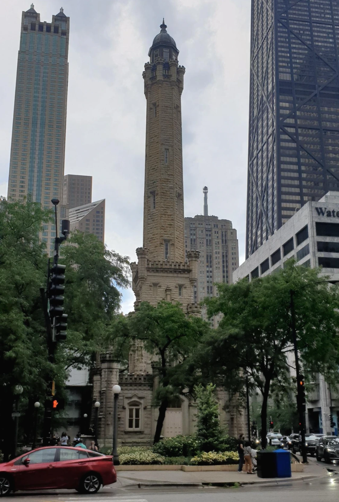 시카고 워터타워 (시카고 랜드마크). 대화재에서 살아남은 몇 안 되는 건물이다.