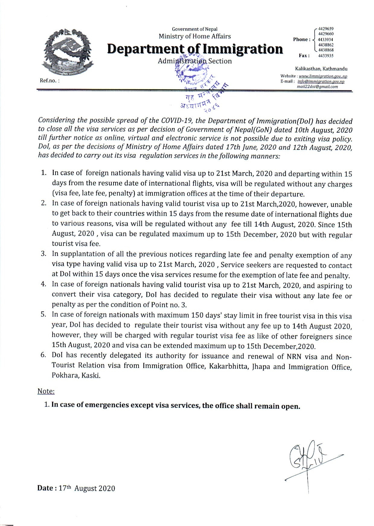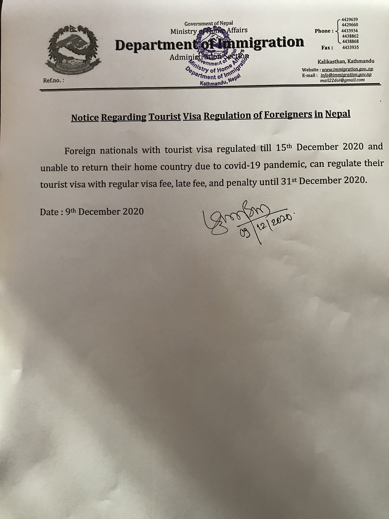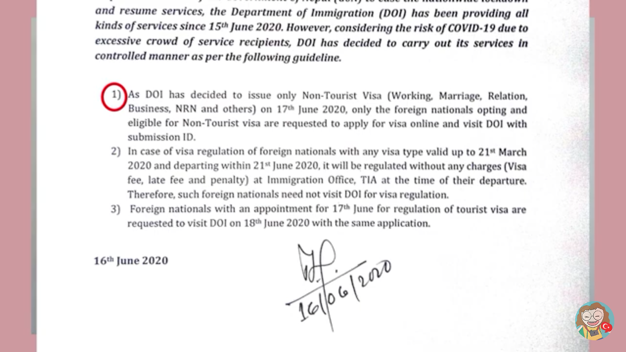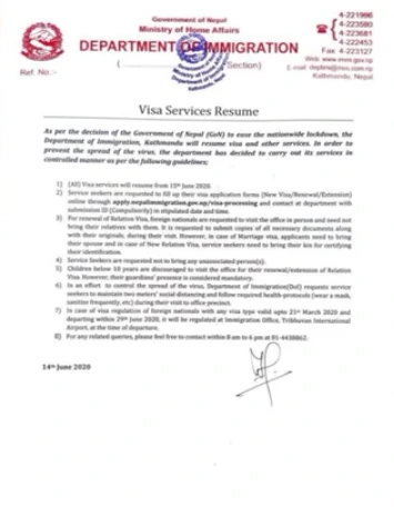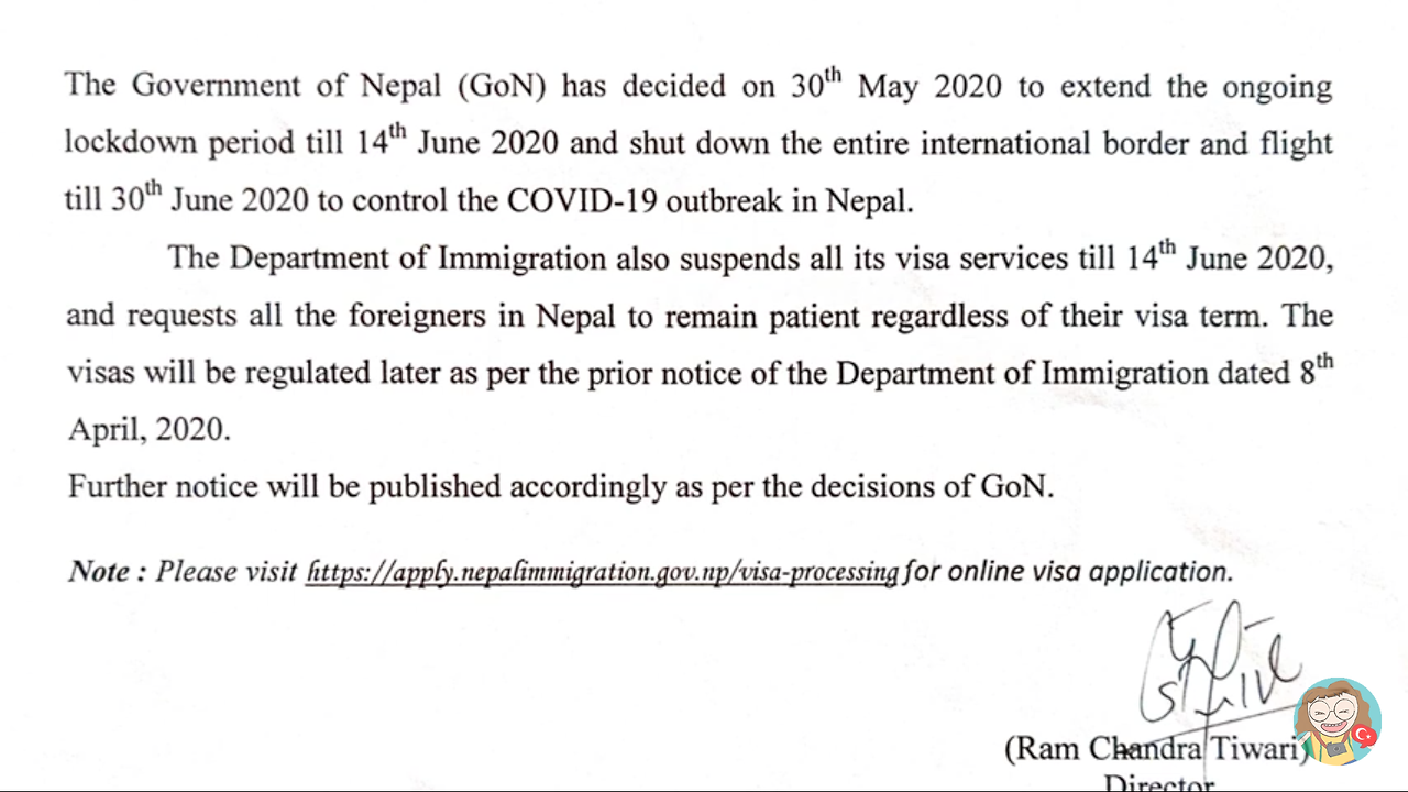 일주일간 관광비자 업무를 재개할테니 그 안에 비자비를 내러 투어리즘 오피스로 오라는 것이었는데, 그 짧은 공문은 많은 궁금증을 유발했다. 네팔 관광비자는 일 년에 5개월로 제한되어 있다. 하지만 길어진 락다운으로 이미 5개월을 초과한 관광객들이 많았는데, 이에 대한 오버 차지 언급이 없었다. 또한 공항이 폐쇄되어버린 상황에서, 언제까지 네팔에 체류해야 할지도 예측할 수 없었다. 다만 6월 1일부터 7월 5일까지 특별기 운항마저 금지시켜놓고는, 6월 29일 전에 네팔을 벗어나는 관광객에게는 비자비를 요구하지 않겠다는 말을 덧붙였다.