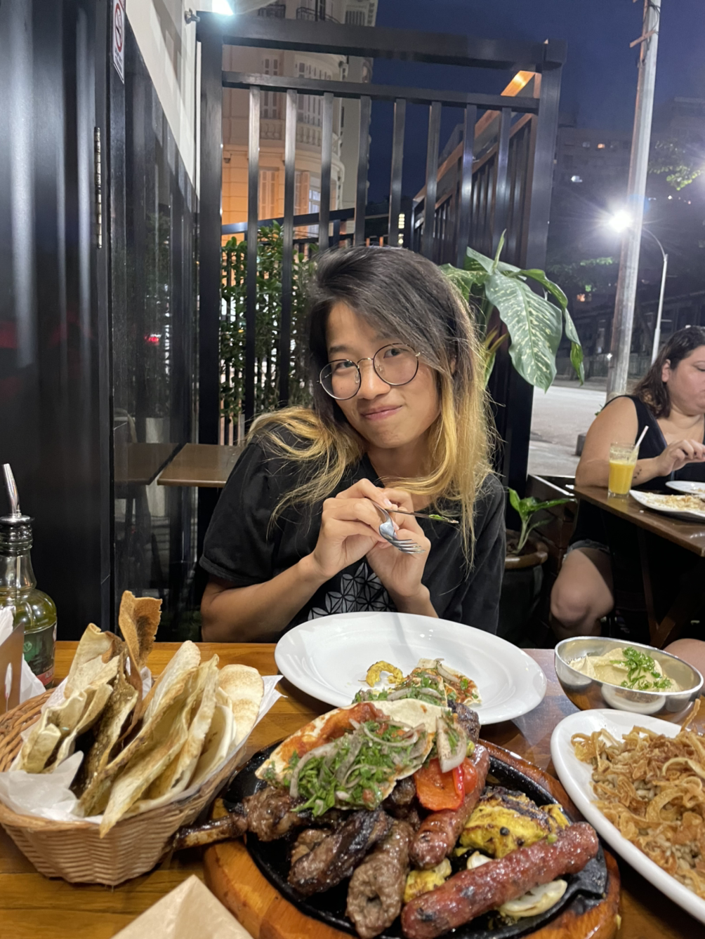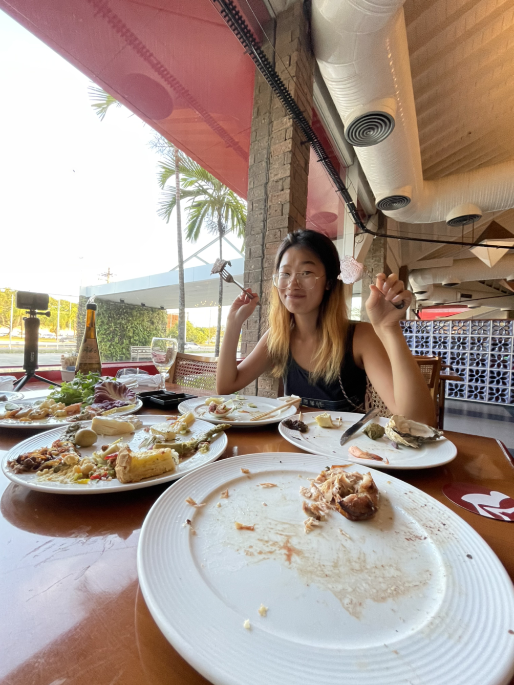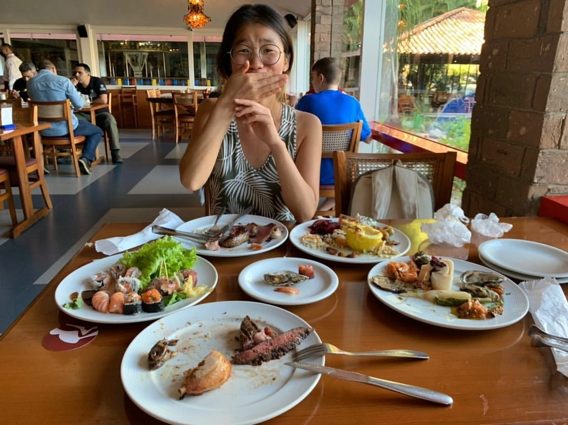 브라질에는 특이한 식당문화가 있다. 바로 'por kilo' 시스템이다. 직역하면 '무게당'이란 뜻을 가진 이 식당은 한국의 편의점만큼이나 흔하다. 식당에는 보통 10~15가지의 음식들이 준비되어 있는데, 이 중에 먹고 싶은 음식을 접시에 골라 담으면, 그 무게에 따라 가격이 책정된다. por kilo는 체형 스펙트럼이 넓고 그에 따라 1인분의 기준도 천차만별인 브라질에 아주 최적화된 시스템이다. 이는 몸무게 차이가 30kg인 우리에게도 아주 편리했다. (우리는 항상 붙어 여행하기에 살이 쪄도 같이 찌고 빠져도 같이 빠지지만, 몸무게 차이는 항상 30kg로 고정이다.) 이 외에도 어려운 메뉴판 대신 음식을 직접 보고 고를 수 있다는 점, 음식을 기다리지 않고 바로 먹을 수 있다는 점, 음식물 쓰레기가 준다는 점, 가격이 저렴하다는 점, 페이주아다(브라질 콩요리)를 비롯한 브라질 가정식을 맛볼 수 있다는 점, 등 장점이 많았다. 무엇보다 큰 장점은 다양한 음식을 맛볼 수 있다는 점이었다. 나에게 por kilo는 곧 '뷔페' 였기에, 내 접시는 언제나 탄수화물도 종료 별로(밥, 볶음밥, 파스타), 육류도 종류별로(닭, 소, 돼지, 생선), 샐러드는 고기와 무게당 가격이 같으니 괜히 손해 보는 것 같아 생략이었다. 하지만 브라질 사람들에게 por kilo는 메뉴는 다양하지만 한가지만 고를 수 있는 '김밥천국'같은 존재였다. 그들의 접시는 탄수화물 하나, 샐러드 하나, 육로 하나로만 채워졌다. 단조로운 접시들 사이에서 오만가지 음식으로 뒤섞인 내 접시가 민망했지만, 오랜 뷔페 습관을 버리지 못한 나는 언제나 모든 종류의 음식을 다 담았다. por kilo 시스템은 종종 베이커리나 아이스크림 가게에서도 도입되어 있어, 디저트류도 다양하게 맛볼 수 있다.