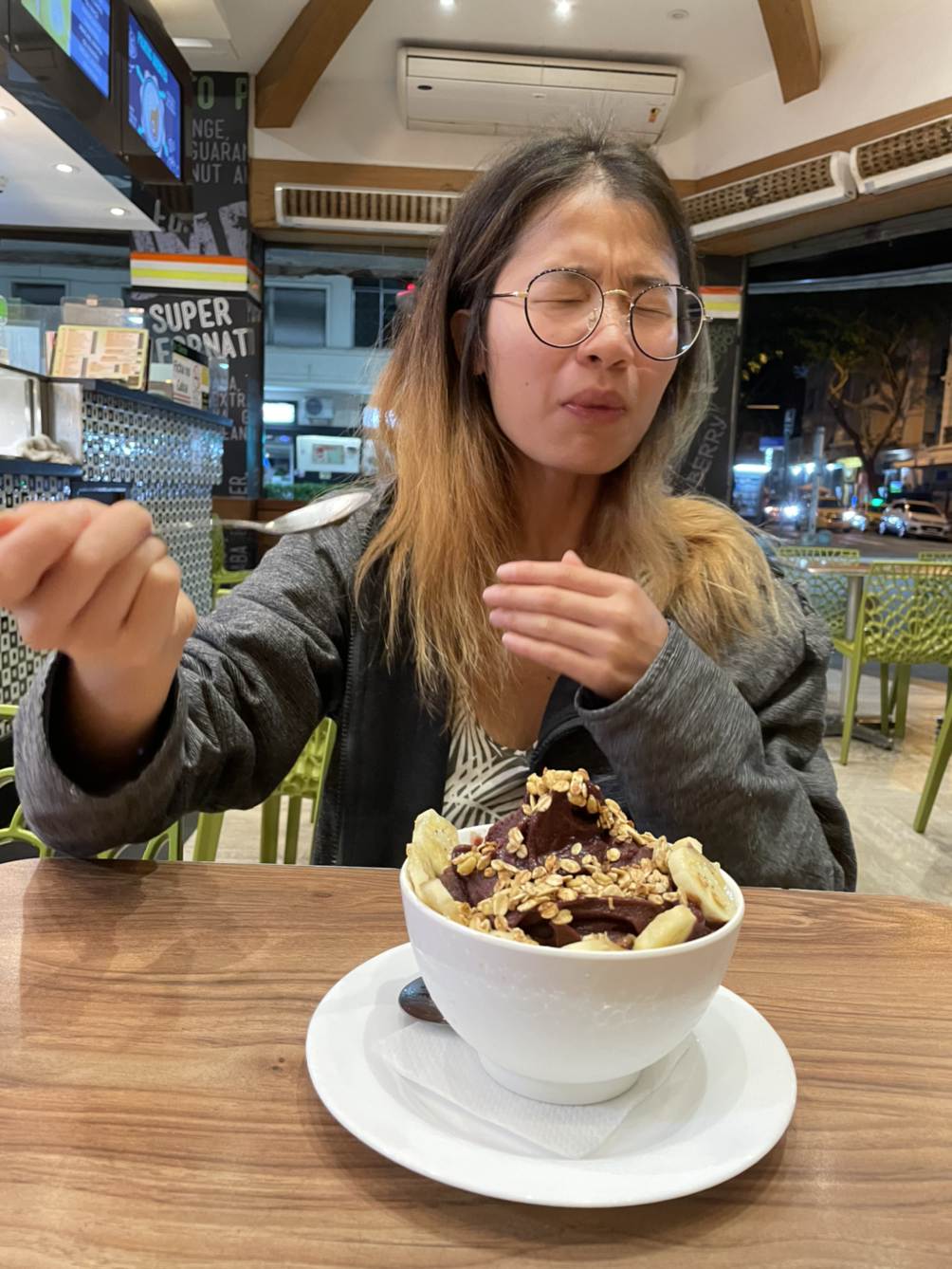 밤이 되면 코파카바나에서부터 이파네마까지 긴 해변을 따라 본격적인 길거리 음식들의 행렬이 이어진다. 삶은 옥수수와 팝콘, 바로 기름에 튀겨주는 감자튀김, 추로스, 타피오카, 직접 토핑을 선택할 수 있는 핫도그, 코코넛워터 등, 보는 것만으로도 입맛을 자극하는 길거리 음식들이 줄지어 있다. 그중에선 브라질에서만 볼 수 있는 특별한 길거리 음식이 있다. 미란다 커의 다이어트 비결로 유명세를 타며 한 때 한국에서도 큰 인기를 끌었던 슈퍼푸드 '야사이베리'가 그 중 하나다. 야샤이 베리는 브라질에서만 재배되는 아마존 열대과일로, 리우를 비롯한 무더운 해변도시에서는 달달한 아이스크림 형태로 즐겨 먹는다. 그래놀라나 초코볼 토핑을 올려먹기도 하고 다른 과일맛 아이스크림과 혼합해 먹기도 한다. 아이스크림형 아샤이베리는 설탕이 많이 들어가고, 그만큼 칼로리도 높지만, 비교적 건강한 맛과 '슈퍼푸드'라는 꼬리표 덕분에 매일 먹어도 죄책감이 들지 않았다.
