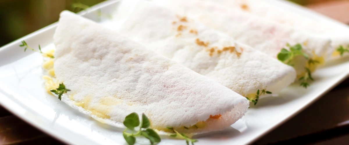 쫀득쫀득한 식감을 가진 또 다른 조식 메뉴가 있다. 바로 타피오카다. 한국에서는 거의 버블티에만 사용되지만, 브라질에서는 주식으로 보다 다양하게 활용된다. 고운 입자의 흰색 타피오카 전분은 겉보기엔 밀가루와 비슷해 보이지만, 조리법과 보관법에는 큰 차이가 있다. 물이나 우유과 같은 액체로 반죽을 해야 하는 밀가루와는 달리, 타피오카 전분은 열을 가한 프라이팬에 전분을 그대로 부어 조리한다. 그럼 하얀 전분이 녹으면서 반투명한 녹말 상태가 되는데, 이 과정에서 점성이 생기면서 우리가 아는 버블티 펄의 쫀득쫀득한 식감이 된다. 타피오카 전분은 바로 섭취하면 설사를 유발하기 때문에, 반드시 조리 후 섭취해야 한다. 또한 밀가루와 달리 열에 약하기 때문에 무더운 브라질 날씨에는 반드시 냉장 보관해야 한다. 타피오카는 자체만으로는 맛이 약하기 때문에 항상 무언가를 곁들여 먹는다. 타피오카의 메뉴는 무엇을 곁들이냐 따라 ‘salgado(짠 거)’와 ‘doce(단거)’로 나누어진다. 식사대용으로는 계란 스크램블이나 햄, 치즈 등이 들어간 살가도. 간식으로 먹을 때는 누텔라나 과일이 들어간 돌쎄가 좋다. 타피오카는 식감만으로도 충분히 매력적이라 어떻게 먹어도 맛있지만, 개인적으로 타피오카에 계란 스크램블만 들어간 메뉴를 가장 좋아한다. 부드러운 스크램블과 쫀득쫀득한 타피오카의 자극적이지 않는 맛이 잘 어우러지기 때문이다.