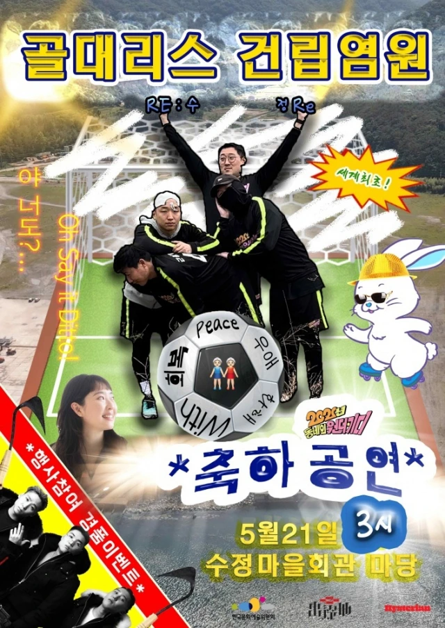 예술하는 사람들이 모였으니 즐겁게 신나게 잔치에 빠질 수 없는 가무(歌舞)로 마을 사람들을 한 마당으로 모두 불러 모았다. 같은 자리에 앉아 사람들의 메시지가 가득 적힌 공을 서로 패스하는 것만으로도 예술로 뒤섞이는 평화라 생각했다.