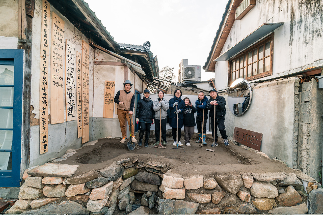 여느 관광지처럼 매끈하게 다듬어진 거리, 많은 관광객이 모여드는 전주 한옥마을에 3평 남짓 작은 논이 나타났다. 한옥마을에 위치한 문화예술공간 '사용자공유공간플랜C'에서 개인과 사회가 맞닿는 삶터를 사유하기 위해 한옥마을 내 구들장논을 만드는 작업을 진행했기 때문이다. 플랜C에서 구들장논을 만드는 '굳이백배미'팀은 큐레이터·행위예술가·미학자·음악가·농민 등이 모여 생태예술 운동을 연구하는 활동을 전개하고 있다. 생태와 예술, 그리고 구들장논은 어떤 상호 작용을 갖고 있을까. 그 연결구조가 궁금했고 구들장논에 모내기 행사를 함께 기획해 보면서 그간의 연구궤적을 함께 살펴볼 수 있었다.