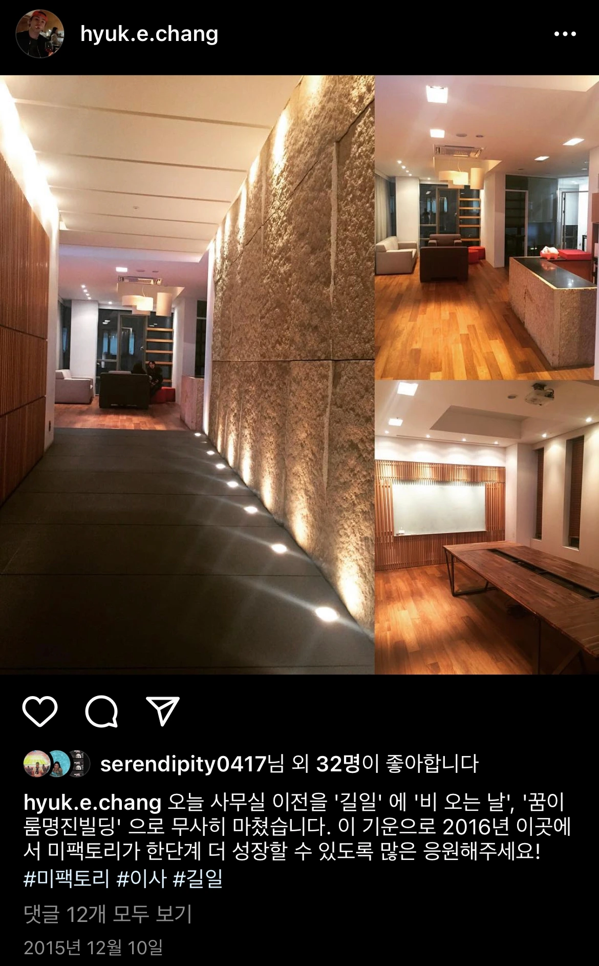 얼떨결에 법인을 설립한 대표들은 각자의 직원들을 모아서 학동역의 작은 사무실을 임대했다. 영상으로 마케팅을 해서, 상품을 판매하는 방식을 시장에서 처음 시도했던 만큼 그 당시 효율은 엄청났었다. 떠올려보면 그때는 대단하다 느껴본 적이 없고 마냥 신기했던 것 같다. 인원도 이전에는 나를 제외하면 정식 직원이 2명인 회사였기에 회사라는 느낌이 크게 들지 않았었는데, 각자의 회사 인원들이 합쳐지고 사무실도 생기니 기분이 묘했다. 그리고 각 대표들이 모여서 함께 만든 회사였기에 대외적인 대표가 필요했고 내가 그 역할을 맡게 되었다. 그래서 원하지 않는 당시의 인터뷰들이 남아있다...