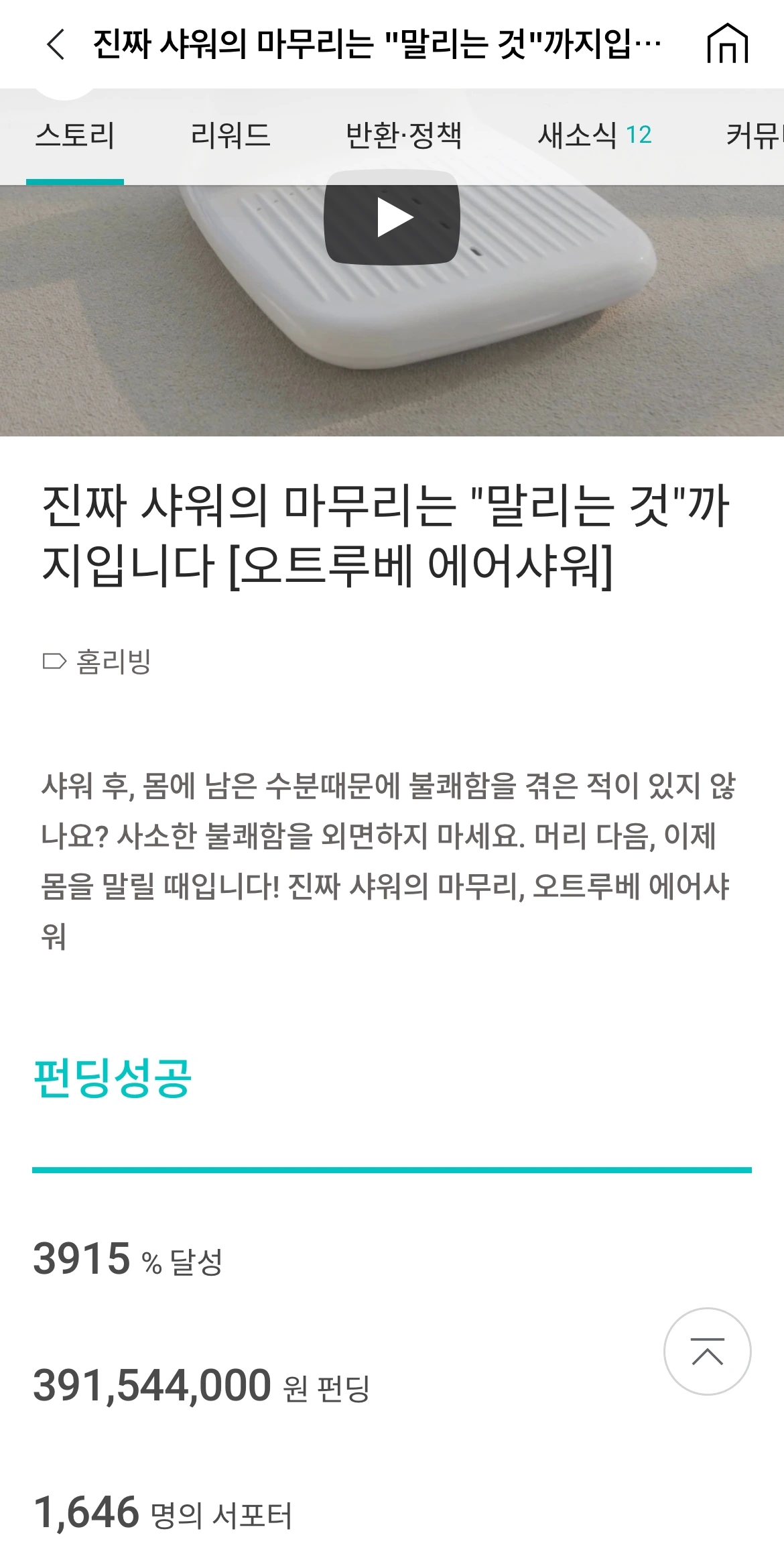 그렇게 8월 말, 와디즈를 통해 오트루베 에어샤워 의 첫 판매를 시작했다. 딜이 열리자마자 주문이 들어오기 시작하더니 얼마 안돼 1억 이상 펀딩을 모았다. 담당 PD는 예상보다 빠른 판매 속도를 보며 스타트가 좋다며 격려 메시지를 보내왔고, 우리가 기획한 상품의 가격, 디자인, 소구점들이 시장에서 인정되는 순간이었다. 결론적으로는 목표 20억을 외쳤던 나에게는 민망한 스코어인 3.9억의 매출을 냈다. 나를 제외한 대부분의 사람들은 이 정도까지 판매가 될 줄 몰랐다며 축하 연락을 주었고, 내가 목표한 매출까지는 아니었지만 다시 한번 시장에 살아남을 수 있는 새로운 상품을 기획했음에 행복했다.