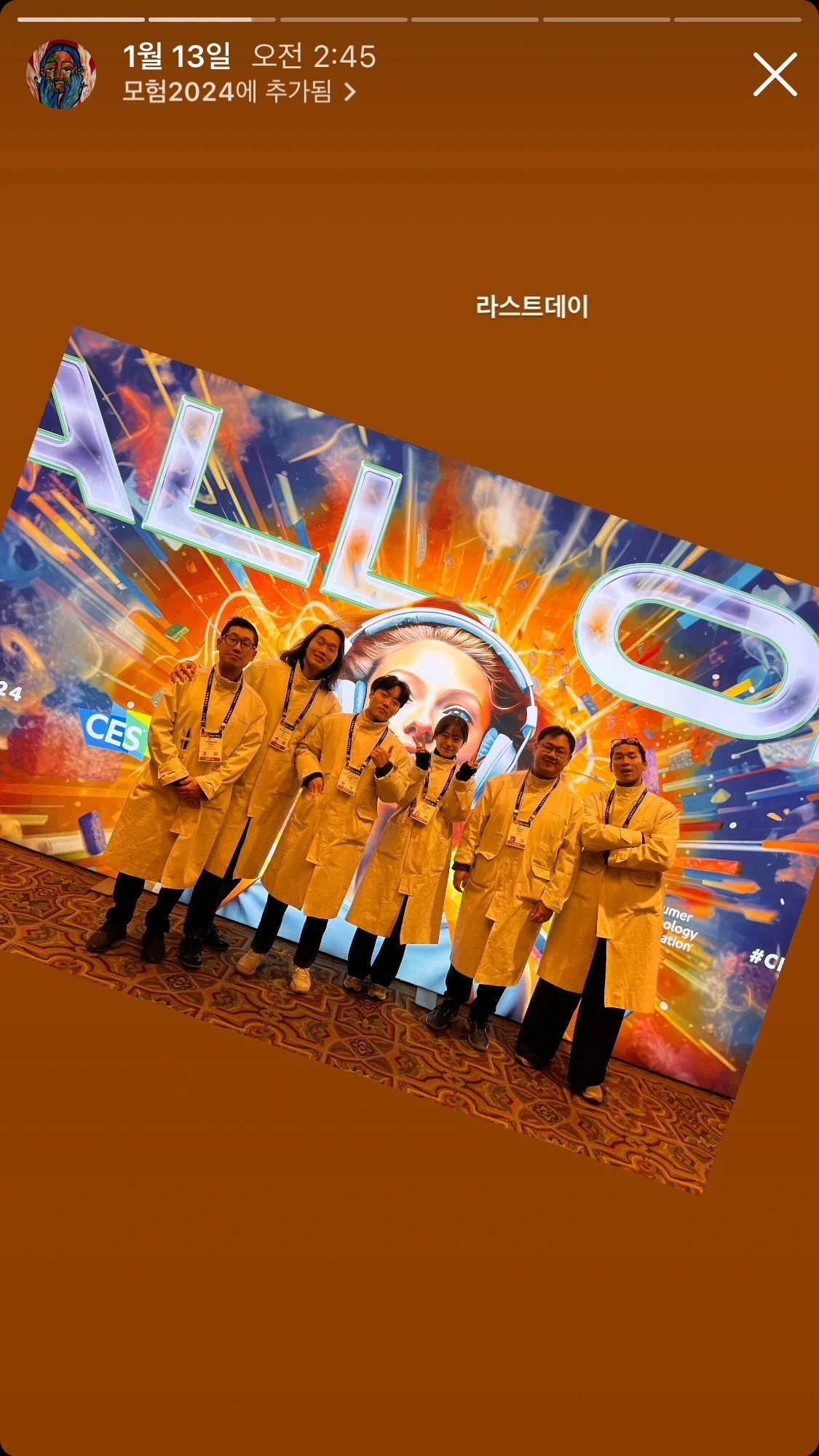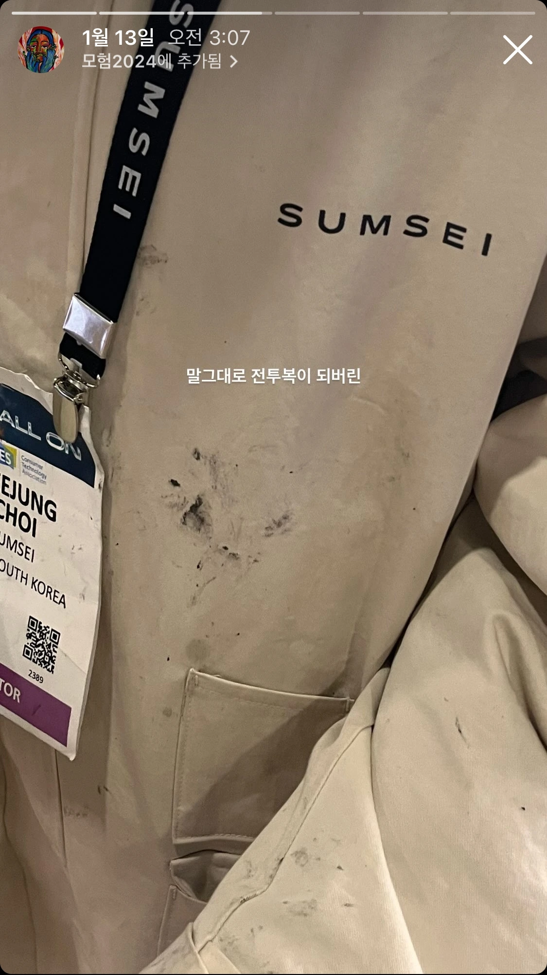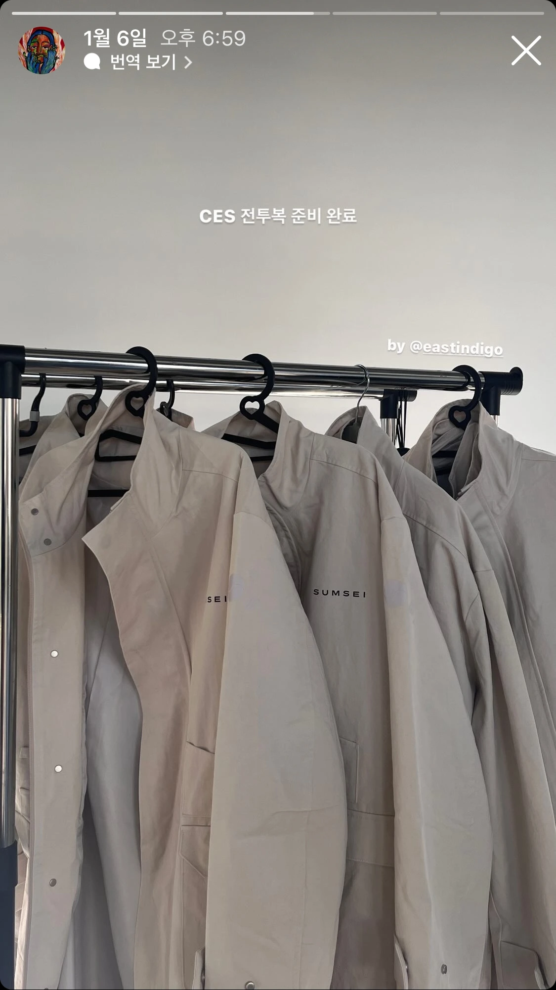 출국은 1월 7일 일요일 밤이었다. 전날인 토요일에 ㅅㅇ, ㅎㅈ과 사무실에서 만났다. 이유는 기본학교 동지이자 이스트인디고 브랜드를 운영하는 ㅅㅇ와 ㅁㄱ가 만들어 준 유니폼이 출국 바로 전날에 나와 픽업하기 위해서였다. 넉넉하지 않은 스케줄이었는데 동지들은 CES를 가는데 그냥 보낼 수 없다며, '미래 가전 연구자들'이라는 컨셉까지 잡아 유니폼을 제작해 주었다. 최종으로 나온 실물을 피팅해 보자마자 만족스러움에 여기저기서 탄성이 나왔다. 실제로 CES에서 우리 부스가 일등이었는지는 알 수 없지만 유니폼은 CES 부스 전체를 통틀어서 일등이 확실했다. 다른 부스의 스탭들부터 레스토랑이나 쇼핑몰에서 일하는 수많은 사람들이 유니폼이 멋지다는 칭찬과 함께 어디서 살 수 있는지를 묻고 물었다. 피팅 후에 각자 짐을 싸고, 나는 유니폼 하나를 챙겨 프레인빌라로 향했다. 따로 연락은 안 드리고 출국하기 전에 여 대표님께도 유니폼을 보여드리고 싶어서 문 앞에 두고 올 생각이었다. 벨을 눌렀지만 역시나 계시지 않아 문 앞에 두고 가려는 순간, 여 대표님이 산책하고 들어오시는 길에 우연히 마주쳤다. 유니폼을 건네니 잘 다녀오시라는 인사와 함께 몇 시간 뒤 우리 유니폼과 함께 응원의 메세지를 남겨주셨다.