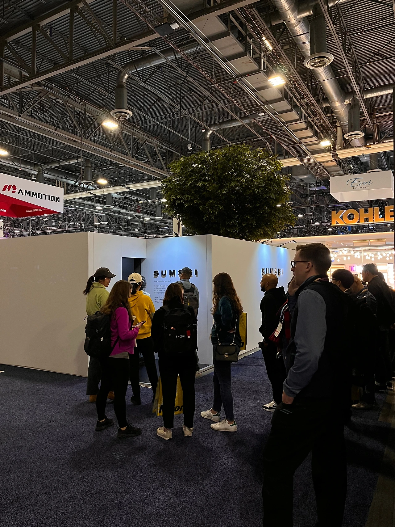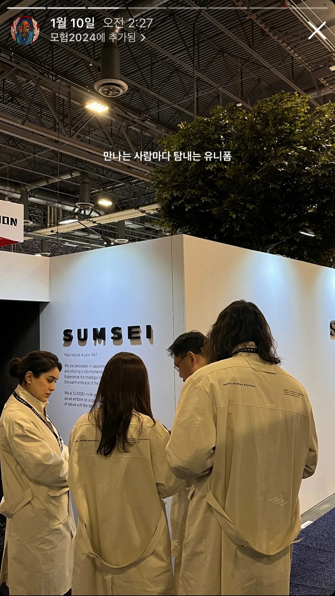 내부를 체험할 수 있게 준비한 대로 한 두 명씩만 들어갈 수 있도록 하고 대기하게 했다. 대기를 해야 함에도 불구하고 나무만 덩그러니 보이고 아무것도 알 수 없는 하얀 박스의 부스는 사람들을 멈춰 서게 했다. 내부를 체험하고 나와서 에어샤워를 경험해보고 싶은 사람들에게는 신발을 벗고 올라서도록 요청하면 큰 거부감 없이 신발을 벗고 올라섰다. 사람들은 바디드라이어 자체를 각자 다른 이유로 생소해했지만 올라서면 모두가 같은 표정을 지었다. 우리 멤버들은 각자의 위치에서 우리 브랜드의 철학과 제품에 대해서 소개했다. 외국인들이 'SUMSEI'를 발음하고 'Air shower'를 말할 때마다 기분이 묘했다. 내가 부여한 대로 사람들을 발음하고 말하고 있었다.