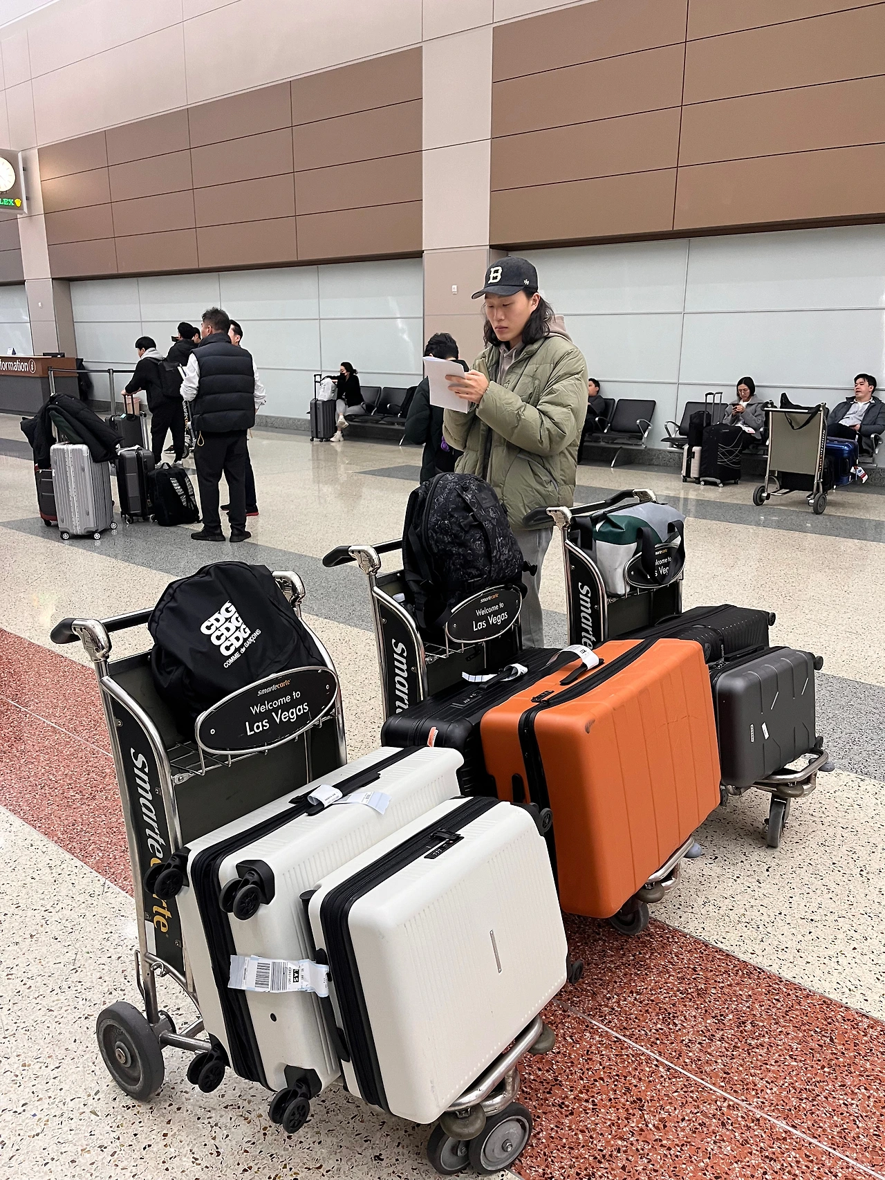 7일 일요일 밤 9시, 인천에서 출발해서 11시간을 날아갔지만 시차가 있어 우리는 출발했던 시간보다 이른 7일 일요일 오후 3시에 라스베가스에 도착했다. 공항에서 CES 입장할 수 있는 배지를 나눠주고 있었기에 각각 받아 들고 공항을 벗어났다. 호텔로 가는 우버 픽업 공간이 따로 있어 그 길을 따라가는 길에 라스베가스 사막의 탁 트인 풍경을 마주하고서야 정말 우리가 왔구나! 하는 실감이 났다.