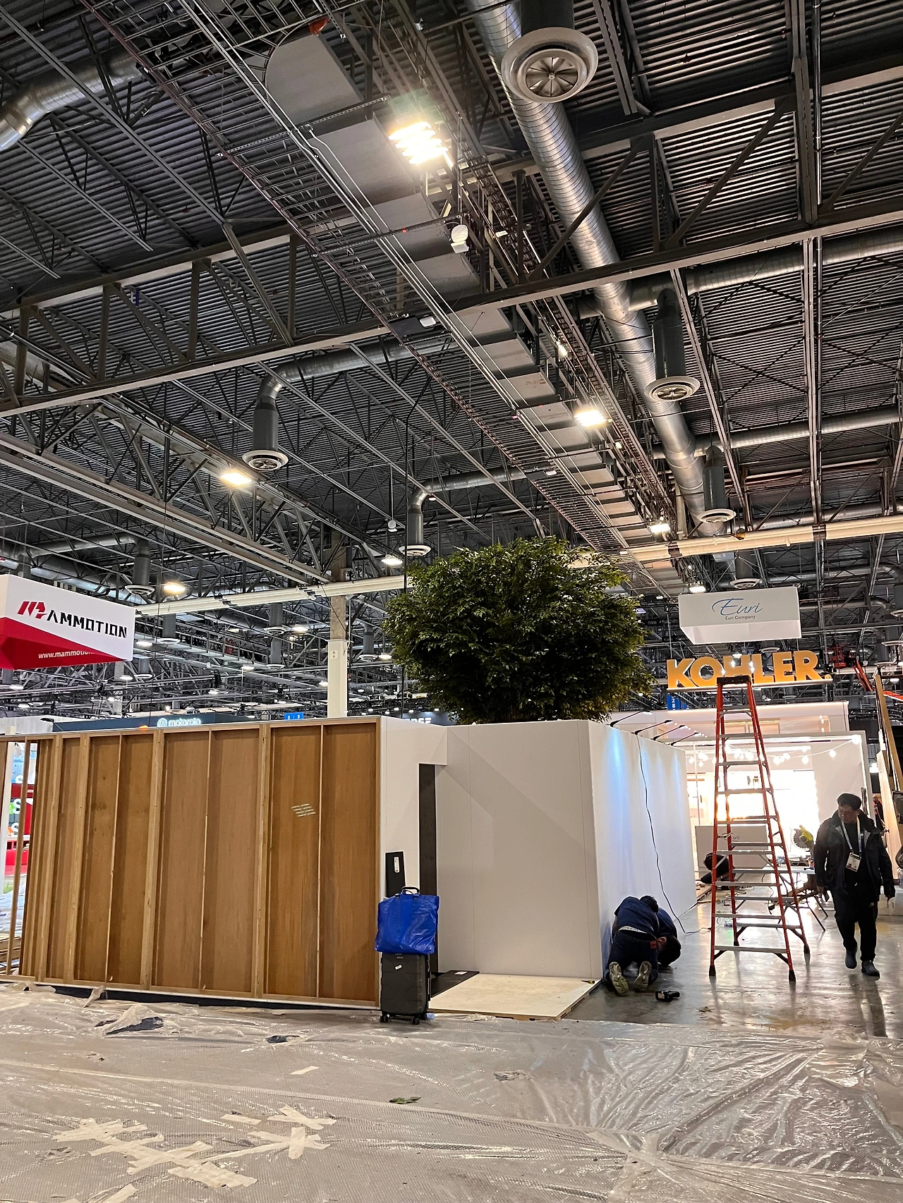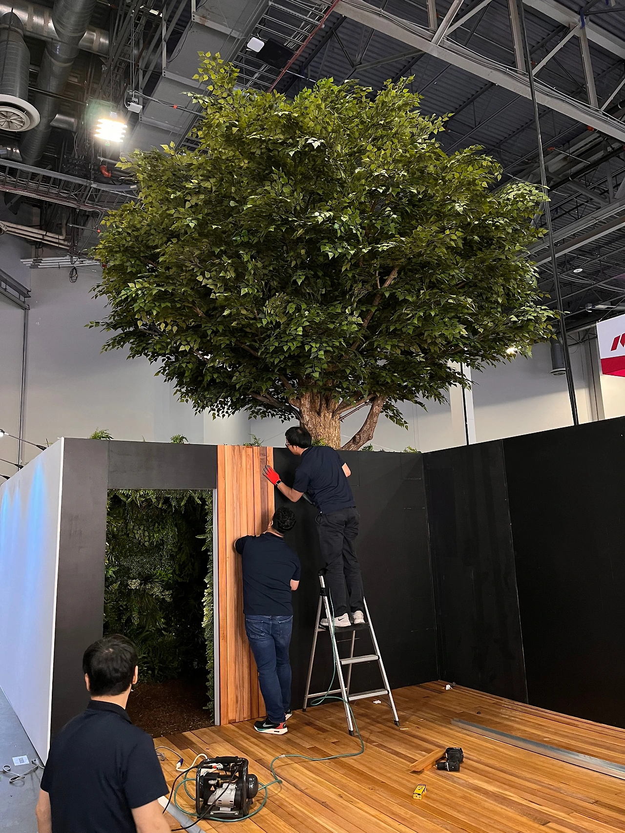 다음 날인 월요일은 전시 전날이라 우리 부스가 설치되고 있는 현장을 체크하기 위해 베네치안 호텔 내에 있는 컨벤션으로 향했다. 가는 길 내내 왜 CES가 세계 최대의 전자제품 전시회인지가 느껴졌다. 전시장 사이즈 외에도 미팅룸 숫자부터 전시관끼리 오고 가는 셔틀버스들까지도 압도적이었다. 우리 부스가 설치되고 있는 Hall C를 통해 들어가니 바로 나무가 눈에 들어왔다.