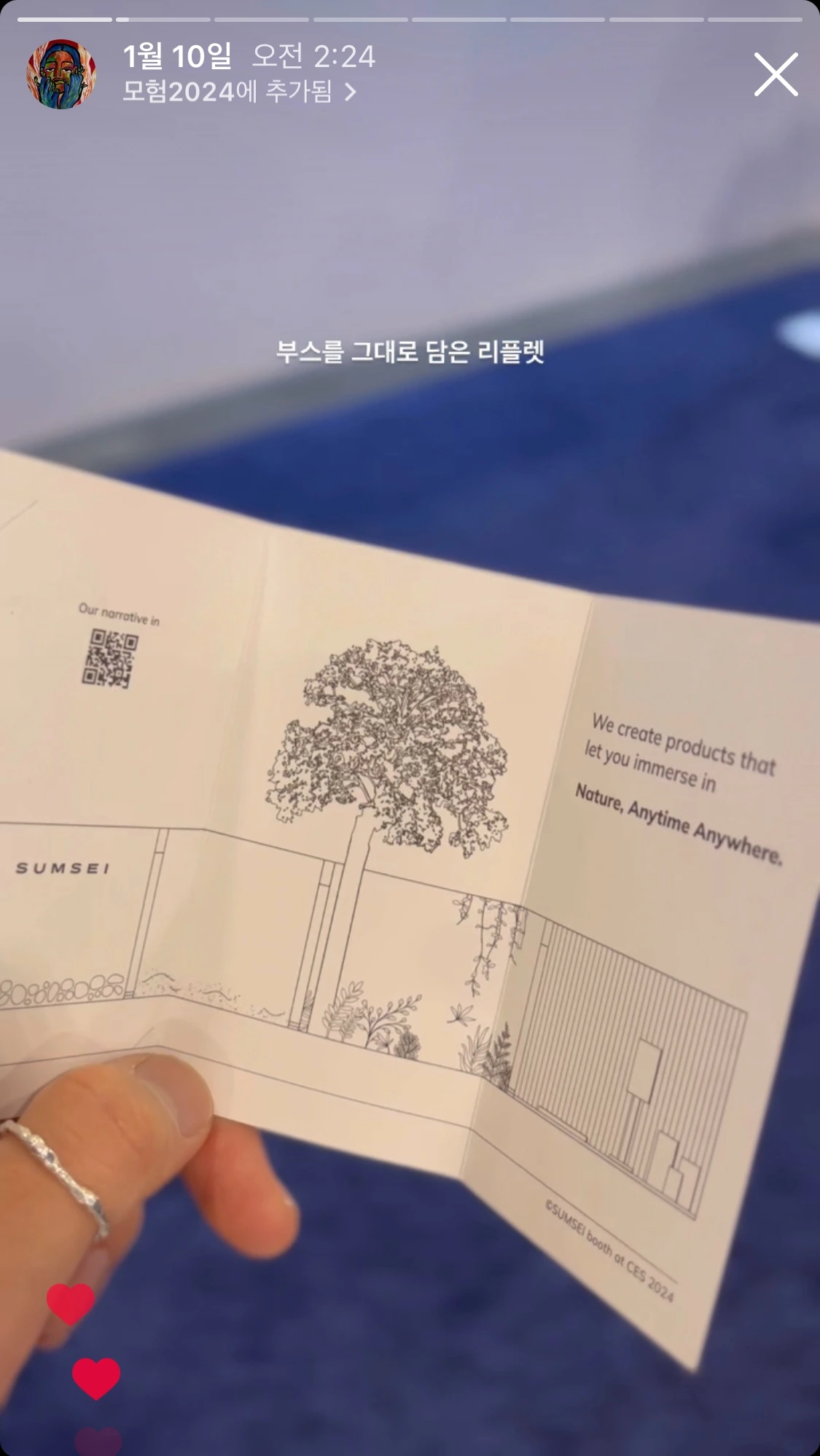 CES는 작년 5월까지도 전혀 계획에 없었다. 5월 11일, CES 안 나가고 뭐 하냐는 ㅊㄱ의 전화 한 통화에 벌어진 일이다. 보러 간 적도 없는 박람회에 나가라니 참 황당했다. 국내도 아니고 세계적인 박람회에 우리가? 작년 5월이면 제품도 에어샤워 하나뿐이었는데, 우리가? '허허 황당하네'라는 생각이 들자마자 이건 가야겠다 하는 생각이 들었다. 교수님이 늘 황당하게 살으라고 해주셨던 말씀 그대로. 그날 한 시간 동안 이어진 통화에서 ㅊㄱ와 나는 이미 부스컨셉을 정했다. 모두가 보여주고 싶어서 안달이 난 박람회에 나가, 모두 가리고 나무 한 그루만 덩그러니 세우기로. 그리고 제품 소개를 듣기 전에 그 안을 맨발로 들어가 테라리움처럼 몇 가지 자연 공간을 체험하고 나오도록.