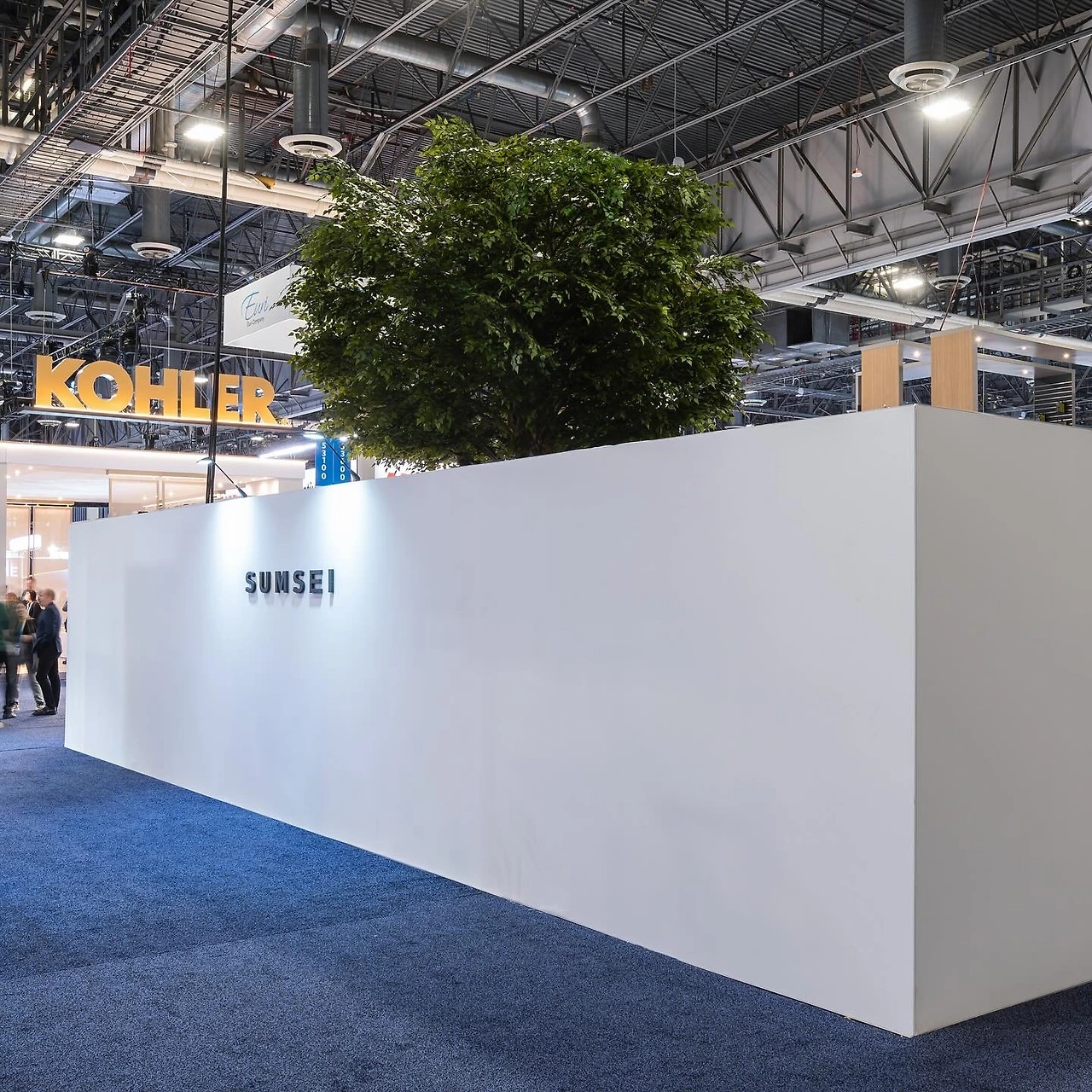 이전에 이런 형태의 부스를 진행해 본 적 없다고 했던 업체였기에 우려했던 부분들이 있었으나 생각보다 완성도 있게 부스가 나오고 있었다. 한국에서 직접 보고 왔던 6미터짜리 나무도 무사히 잘 도착해서 위용(?)을 뽐내고 있었다. 주변을 둘러보니 예상했던 대로 모두 본인들의 브랜드 네임을 천장에 걸었고 부스를 최대한 오픈해서 많은 사람들이 들어올 수 있는 동선을 확보해 두었다. 정반대로 브랜드 네임을 거는 대신에 나무를 심고, 부스를 오픈하는 대신에 모두 막아버린 우리 부스를 보니 묘한 짜릿함도 있었지만 실제 참관객들이 어떻게 반응할지 알 수 없어 작지 않은 불안감도 그 안에 섞였다.