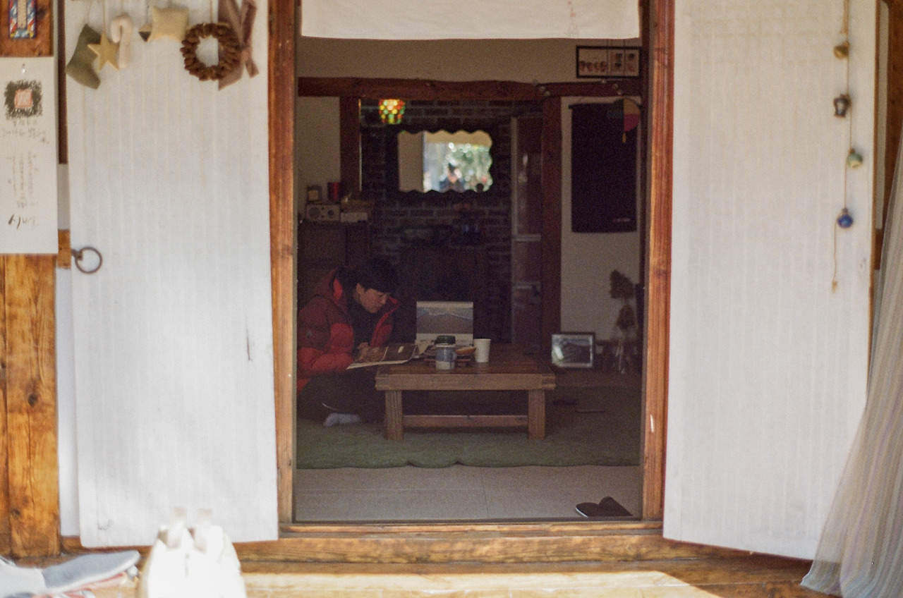 본채는 간단한 차와 함께 담소를 나눌 수 있는 공간이다. 이미 그곳에는 몇 명이 앉아서 대화를 나누고 있었다. 여행의 즐거움이 바로 이곳에 있다. 이전에는 서로의 존재 자체도 몰랐던 사람들이 만나서 성별, 나이를 떠나서 여행이라는 공통점으로 묶인다. 폭넓은 주제로 이야기는 흘러가고 여행, 취미, 사진 소소한 일상과 같은 개인의 이야기가 우리의 이야기가 되는 시간이 소중하다. 나중에 알고 보니 게스트는 나 포함 2명이 전부였다. 다른 사람들은 모두 주인장의 지인들이었다. 두부 장인, 트레킹 장인, 술 장인 다양한 장인들과 함께 폭넓은 주제로 이야기는 흘러갔다. 얼마나 지났을까 주인장이 내일 변산으로 여행을 가신다고 하셨다. 티켓이 생겼는데 유효기간이 얼마 안 남아서 내일밖에 시간이 없다고 하셨다. 잠자리에 누어서 생각해 보니 황당함이 밀려왔다. 게스트하우스에 게스트만 남아있는 경험은 처음이기에. 오늘 처음 만난 사람에게 집을 맡긴다는 것이 얼마나 큰 믿을을 주는 것인지. 실제로 다음날은 금산여관의 주인인 마냥 지냈다.