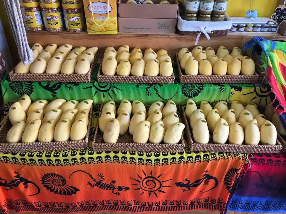 식후에는 입안에 매운맛이 감돌았던지라 망고주스 가게를 지나칠 수 없었다. 달콤한 망고주스가 물회의 후식으로 그냥 딱이었다. 어쩜 그리도 간단한 계획만으로 만족스러운 식도락 여행이었는지. 음식 맛은 결국 재료가 좌우한다는 말이 있듯 여행지가 제주도라서 이미 반은 먹고 들어갔기 때문인 걸까.