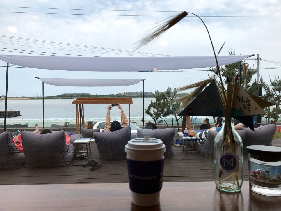 오래 걸으며 바람을 많이 맞아서 그런지 저녁이 오기 전에 피로가 몰려왔다. 성산일출봉과 섭지코지, 이 두 곳을 제대로 감상한 것만으로도 충분한 하루라고 생각했다. 인근의 새로운 해변 카페를 찾았다. 역시 서부든 동부든 제주 해안에서는 그럴듯한 야외 카페를 찾는 일이 쉬웠다. 약간 흐려진 날씨 때문인지 카페에도 바람이 몹시 불었다. 마치 내가 앞선 여행지들에서 바람을 몰고 온 듯했다. '바람의 여행자라.. 은근히 멋진걸?' 따위의 잡생각을 하다가 밖에서는 도저히 노트북을 할 수 없겠다 싶어 안으로 들어갔다. 주문해 놓은 따뜻한 아메리카노를 받아든 채 가로로 넓은 원목 테이블에 자리를 잡고 앉으니 비로소 몸에 온기가 퍼졌다.
