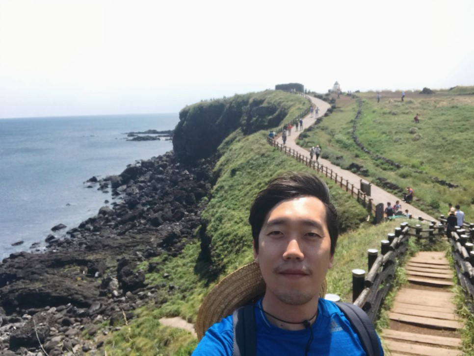 사실 여행할 때는 미디어니 관광산업이니 하는 따위의 생각은 할 겨를도 없었다. 그저 너무 좋아서 천천히 걸었고, 인적이 드문 곳에서는 마음껏 셀카도 찍으면서 놀았다. 휘날리는 머리칼을 그대로 두어 섭지코지의 바람을 조금이라도 사진에 담아보고자 했다. 혼자 여행하면서 참으로 유용한 셀카봉이었다. 바람이 많이 부는 가운데 꼭 셀카가 아니더라도 지지대 삼아 휴대폰을 고정하고 풍경 사진을 찍기에도 좋았고, 파노라마 사진을 위해 좌우로 이동할 때도 회전축 역할을 해주어 편리했다. 여기에 작은 다리 세 개를 마음껏 구부려서 지형물에 고정시켜 타이머 사진을 찍을 수 있는 미니 삼각대도 제 역할을 톡톡히 했다. 대형 서점에서 9,900을 주고 다른 물건 몇 개와 함께 샀기 때문에 별도의 비용이 들었다고도 할 수 없다.