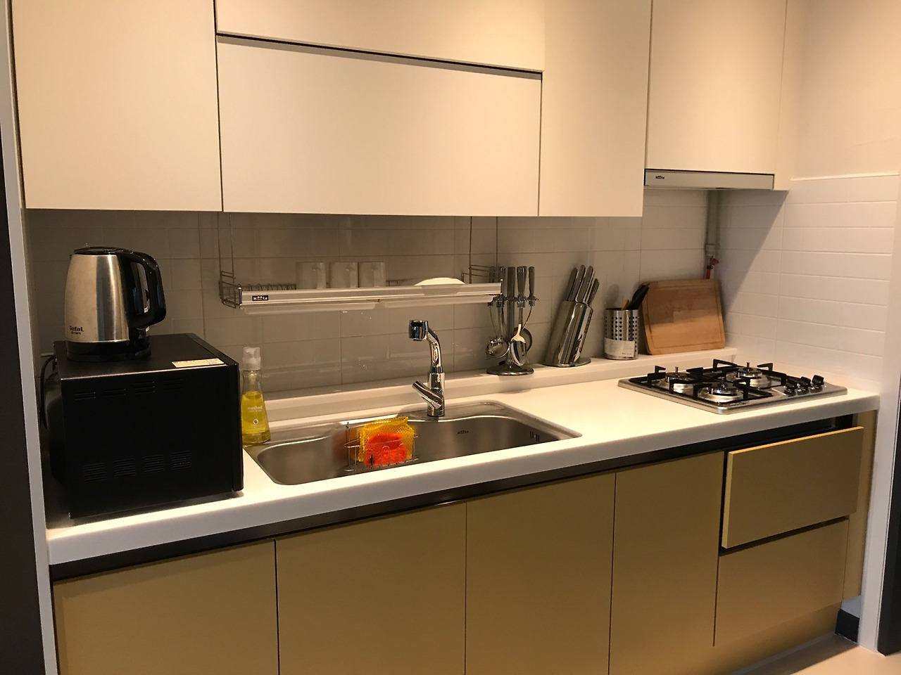 한 달이나 한 공간에서 지내려면 은근히 부엌이 중요하다. 매일 간단한 아침 식사를 편하게 해 먹을 수 있어야 하며, 가끔은 저녁도 직접 조리해 먹을 수 있어야만 연이은 외식으로 인한 시간적, 경제적 부담을 줄일 수 있기 때문이다. 거실과 방 사이에 널찍하게 위치한 싱크대와 가스레인지 사이로 다양한 식기들이 눈에 띄었다. 작년에 내가 이곳에서 지냈다면 최소한 전복 해물탕은 해보지 않았을까 싶었다.