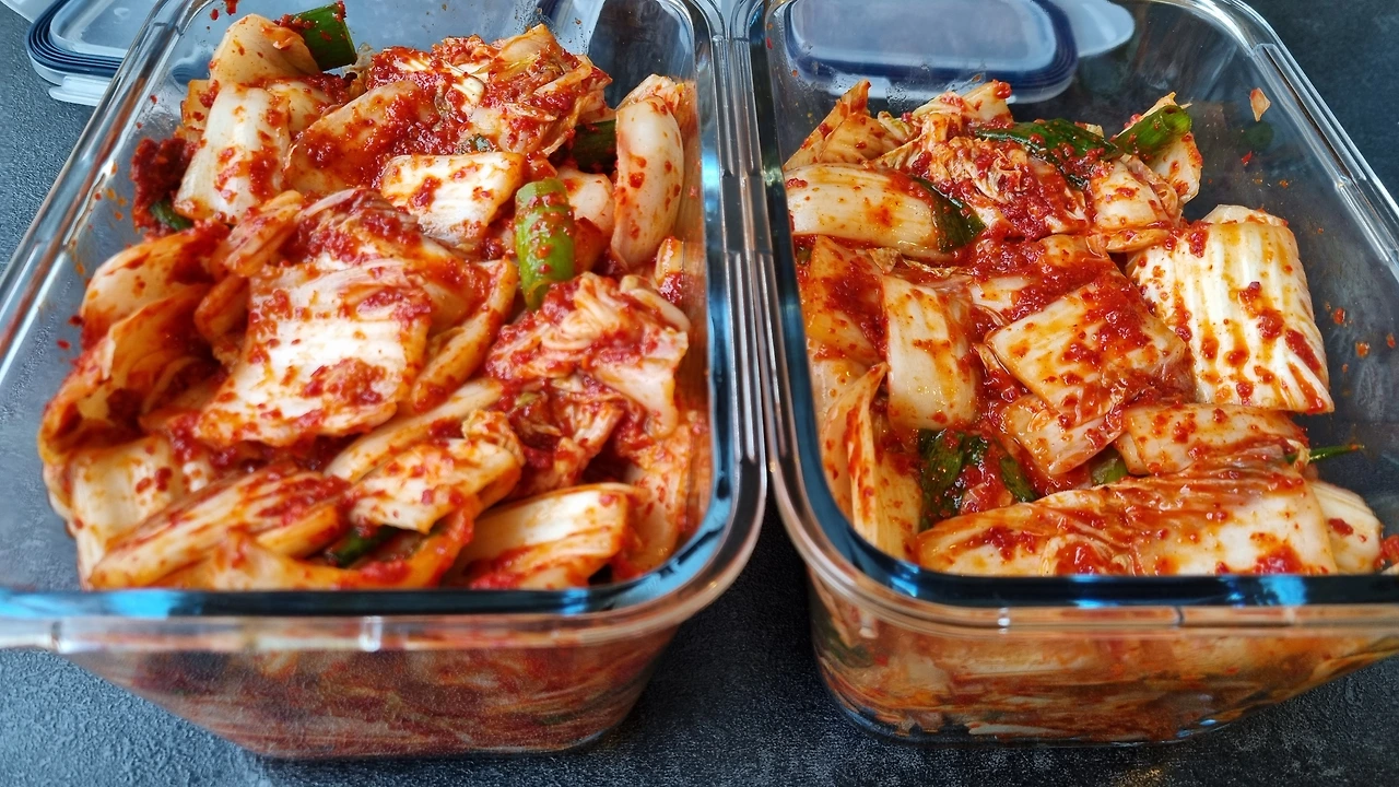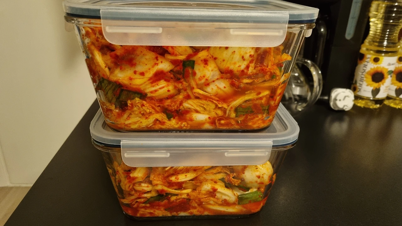 뻑뻑했지만 어찌저찌 믹서로 갈아서 두 가지 용도로 나눠서 용기에 담았다.