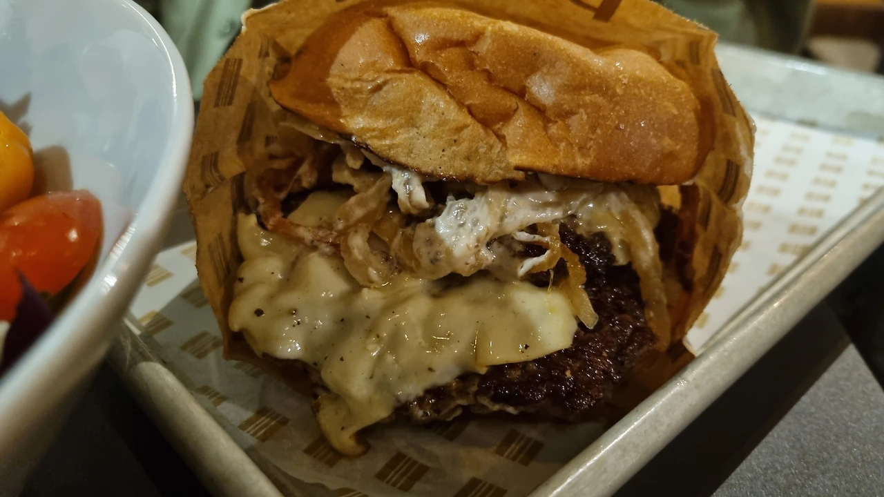 햄버거집에서 햄버거 두 개랑 샐러드 하나