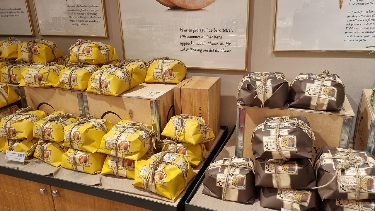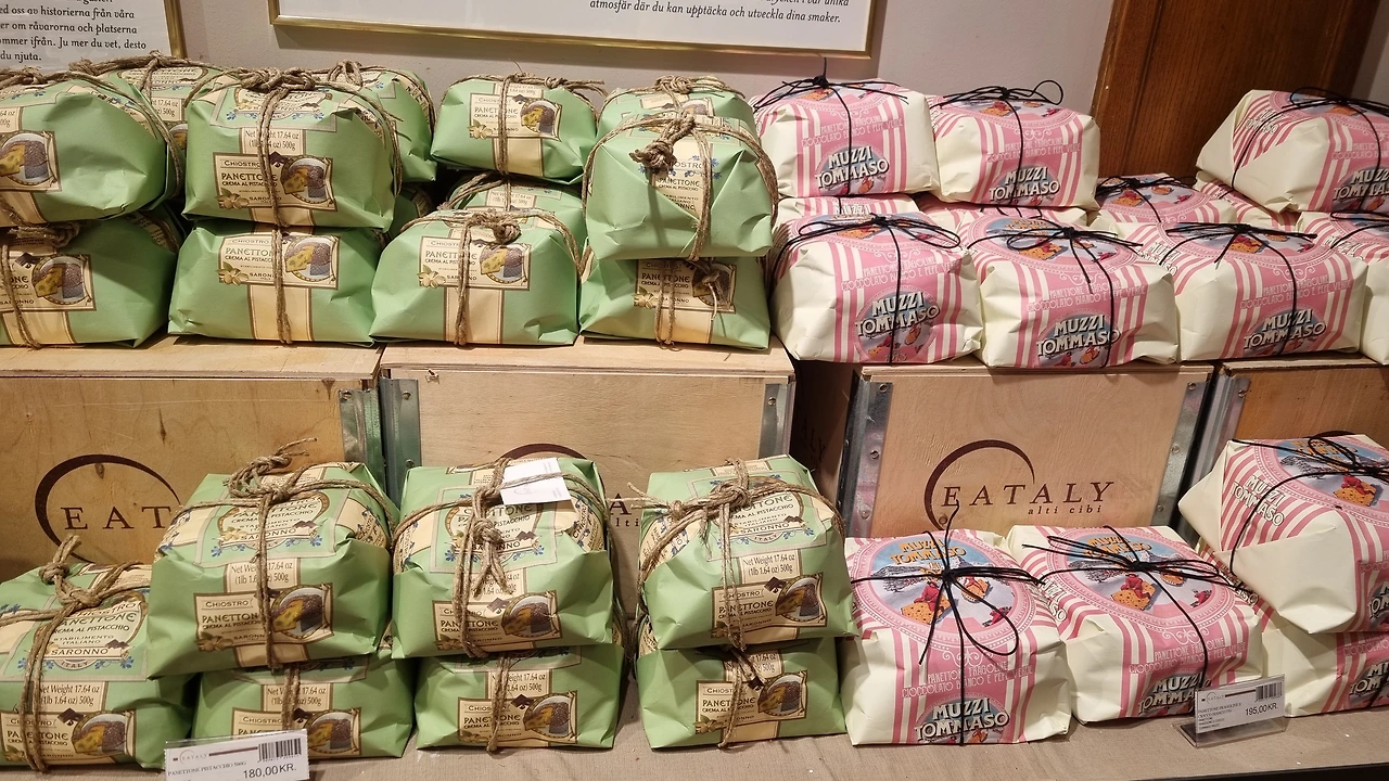 이탈리아 식료품점에서 파나토네를 쌓아놓고 팔길래