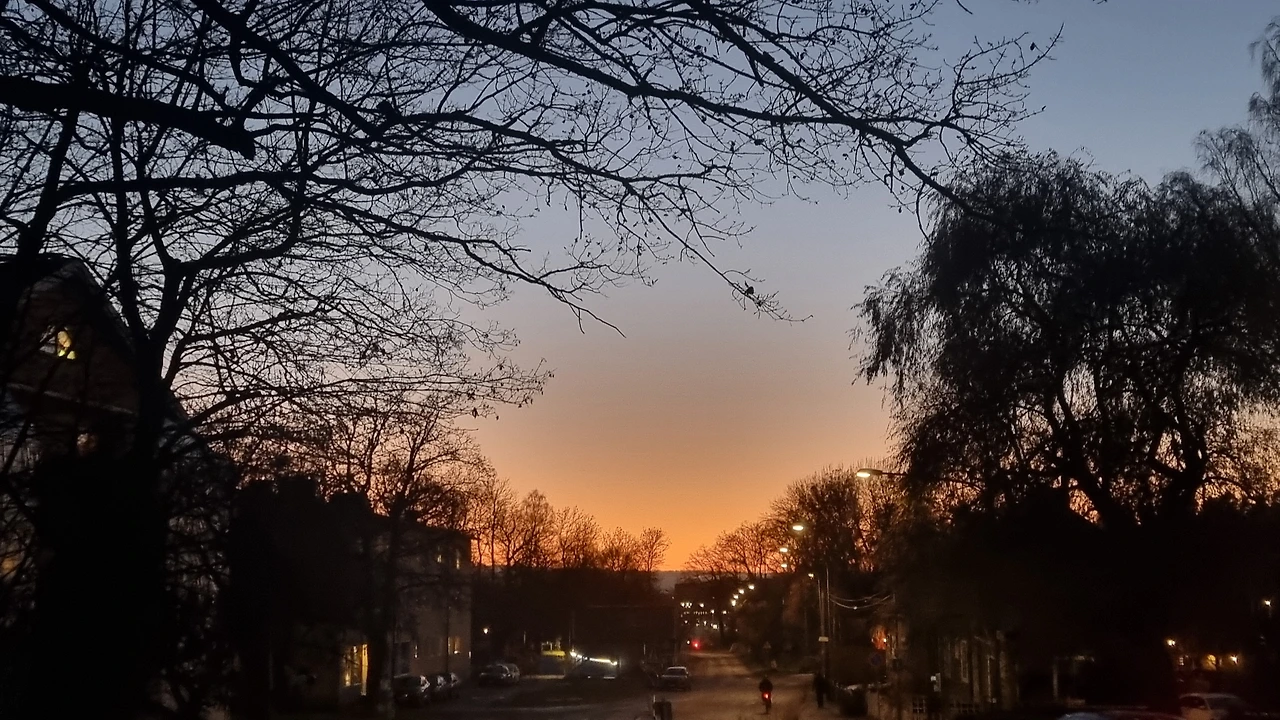 스웨덴의 겨울하늘에 구름없는 맑은 하늘을 볼 수 있는 건