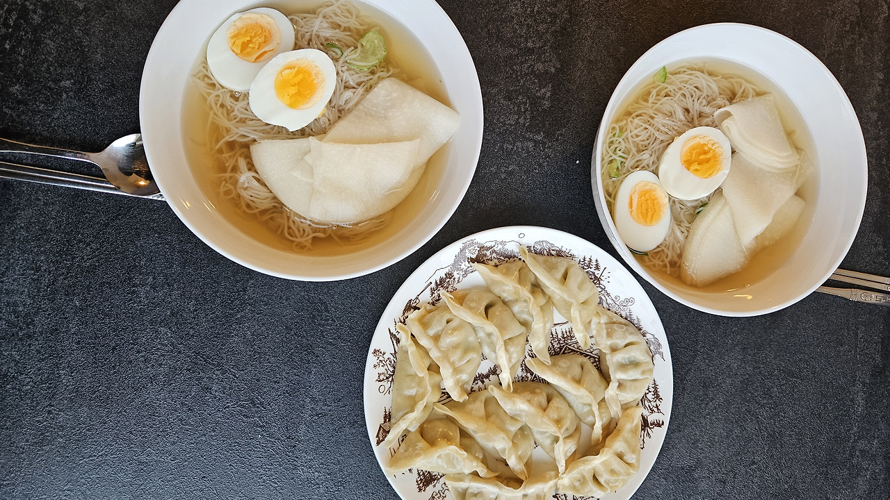 새해 음식으로 떡국 대신 이한치한 냉면을 만들어 먹었다.