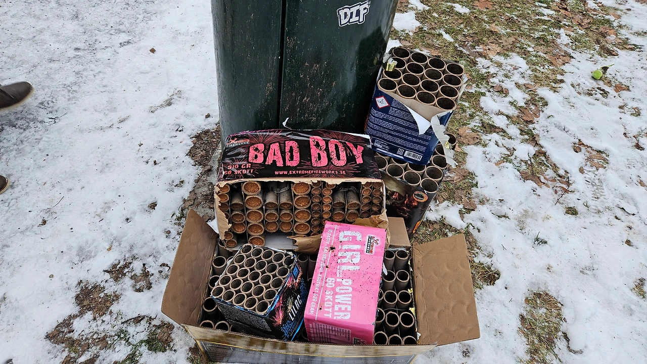 다음날 길가 쓰레기통에 버려진 다 써버린 폭죽들