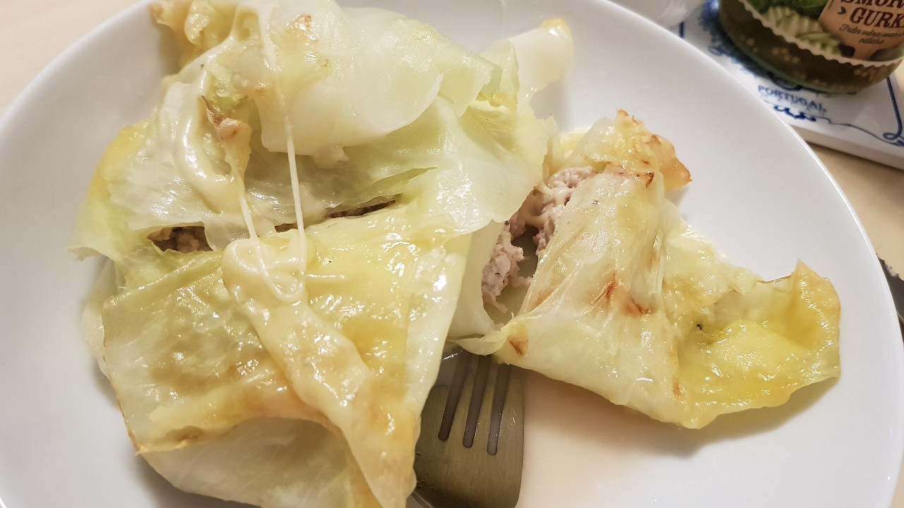 이건 내가 요청해서 만들어 준 요리이다. 양배추를 좋아하는 내가 집에 양배추가 너무 많아서 양배추 요리를 해 달라고 하니 만들어줬다. 간 돼지고기와 양파 등을 넣어서 양배추 잎으로 돌돌 말아서 치즈 얹고 오븐에 구운 요리. 소스로 뭘 넣었는진 모르겠는데 맛이 참 담백하고 건강한 느낌이 나는 음식이었다. 나는 피클류를 좋아하는 편이라 피클과 곁들어 먹으니 딱이었다.