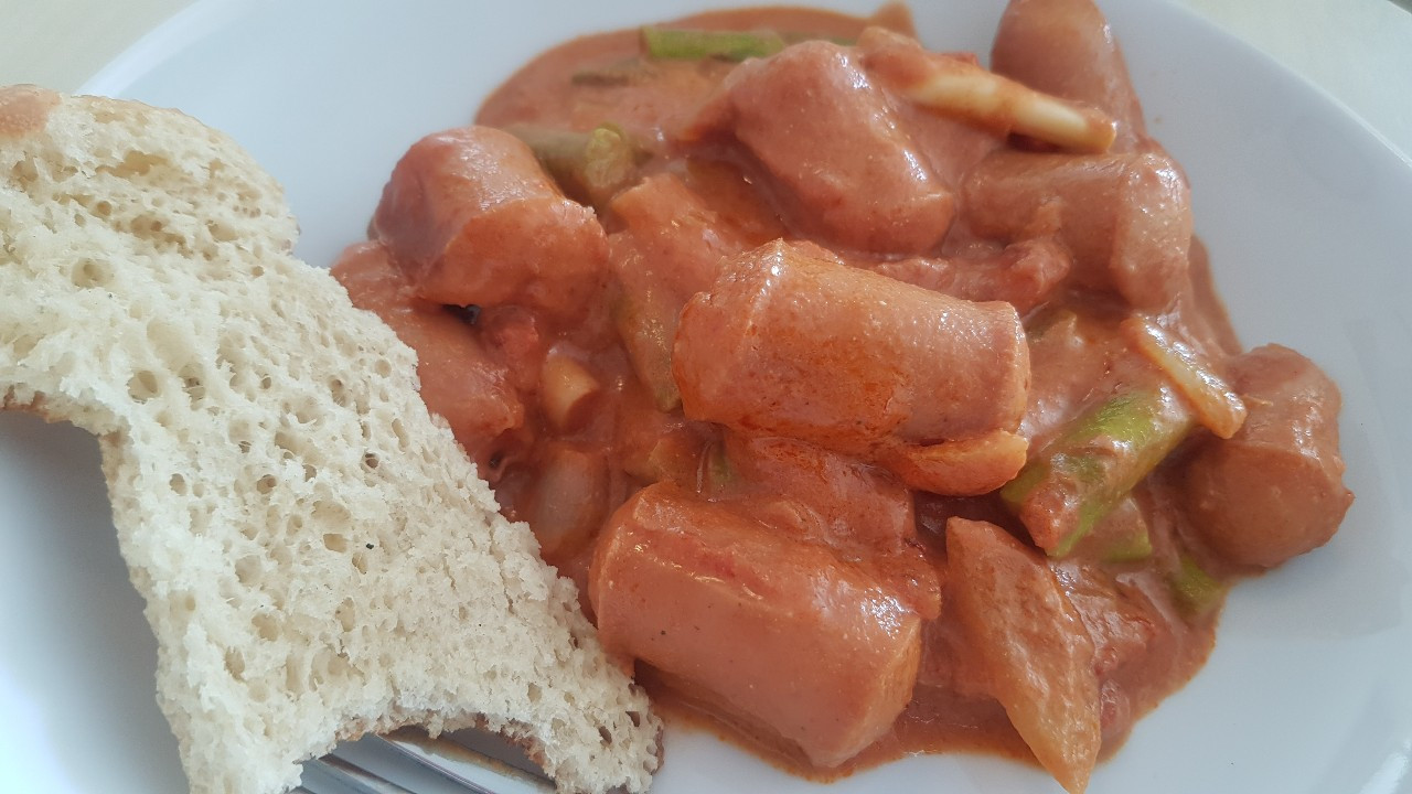 러시아 요리라고 하는데 인터넷에 검색해 보니 완전 다른 요리 사진들이 나오더라... 그런데 남편은 자기의 소시지 요리를 '스트로가노프'라고 칭한다. 어디서 배웠는진 모르겠는데 러시아요리에서 영감을 받아서 만든 건 맞는 것 같다. 약간 로제 소스 맛이고 소시지가 들어간 것이 특징이라는 데(남편의 말에 의하면) 아마 원래 요리랑은 다르게 많이 변형된 듯 싶다. 밥을 좋아하는 남편은 냄비밥을 지어서 밥이랑 먹고 빵을 좋아하는 나는 빵이랑 먹었다.