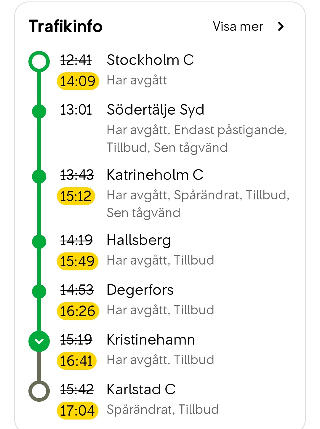 다행히 스톡홀름으로 돌아가는 기차는 연착되지 않았고