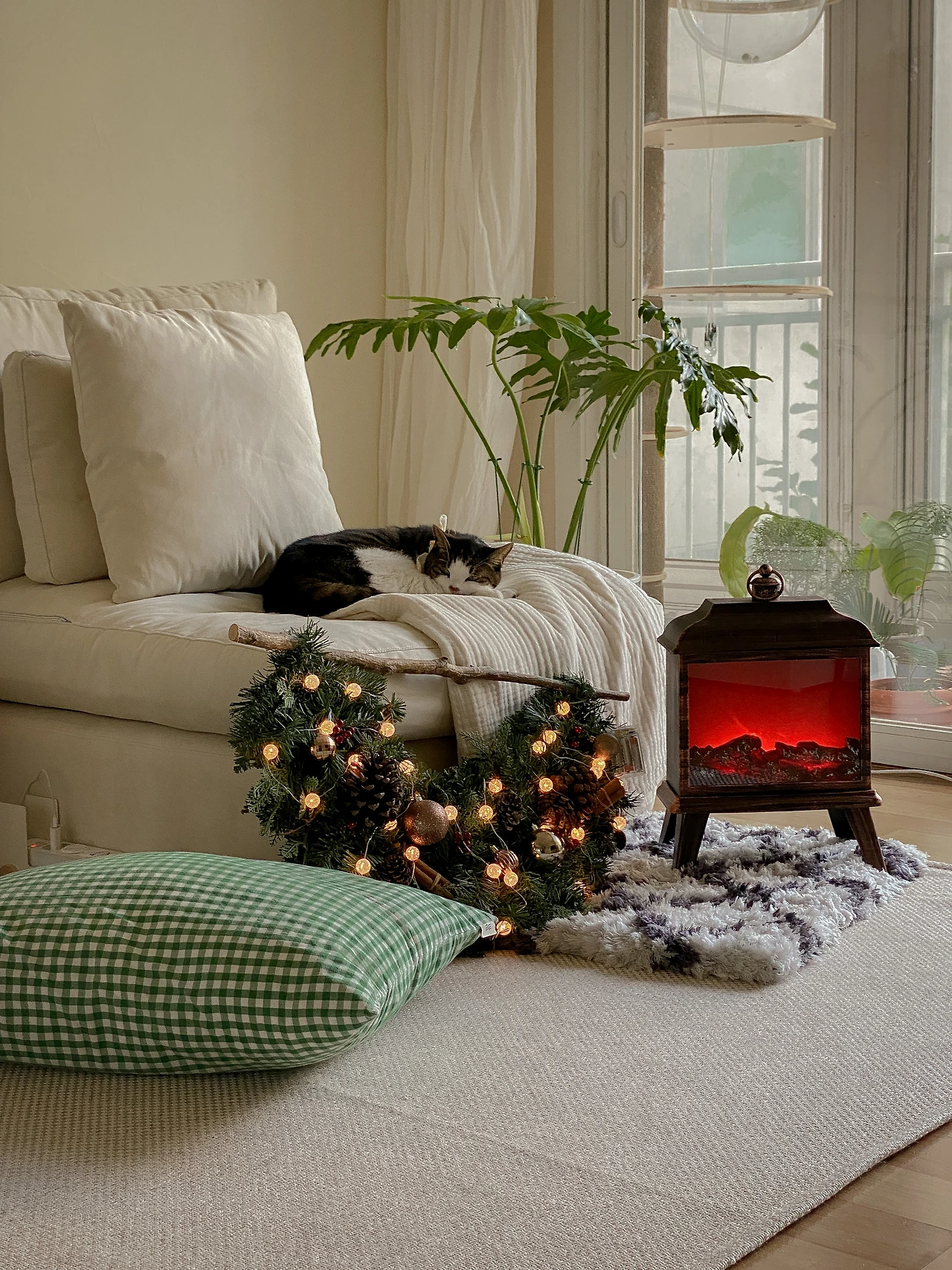 그래서 매년 나의 크리스마스는 10월에 시작된다. 모두가 할로윈을 준비하는 때에 나는 크리스마스 소품을 하나씩 꺼내고, 집안 여기저기에 따뜻한 기운을 불어 들인다. 투명한 유리 화병에 작은 전구를 넣어 빛나게 하고, 며칠 전에는 크리스마스 갈란드를 꺼내 거실에 걸었다. 해가 짧아진 게 아쉬운 요즘이지만, 빨리 전구를 켤 수 있어 즐겁기도 하다. 아직 전기장판을 개시도 하기 전인데 트리를 꺼내는 건 오버인가 스스로 다독이며 꾹 참고 있다.