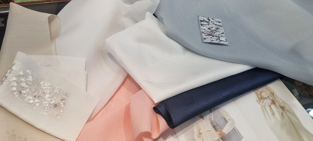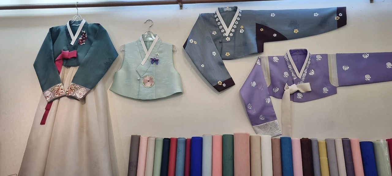 광장시장 2층은 처음 가봤는데 한복집이 참 많았습니다. 이불집에서 소개받은 곳이라 친절하고 제 체형과 얼굴색에 맞춰 소재나 색을 골라주셨습니다. 가격도 합리적이라 엄마랑 언니들도 함께 맞추기로 했습니다.
