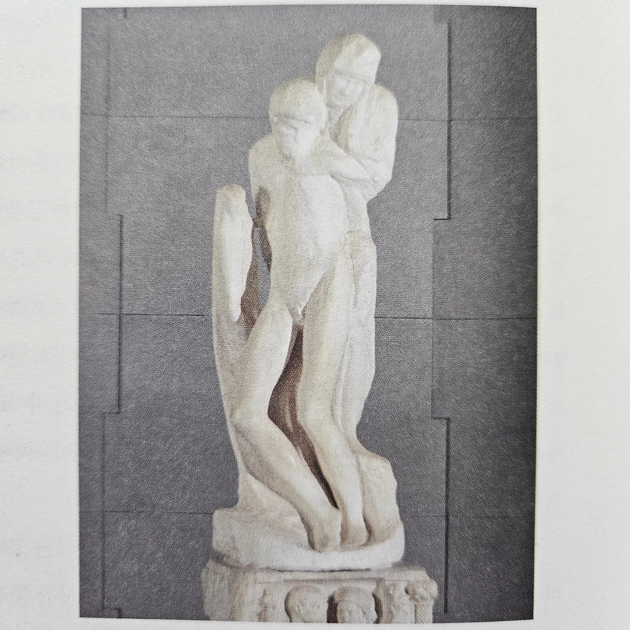 500여 년 전 한 예술가가 미완으로 표현해 낸 이상스러운 비통함이.. 우리 시대, 아우슈비츠 강제수용소 터에 기념 조형물로 세워지기에 걸맞을 정도의 질량을 갖추고 있다고, 현대 예술보다 오히려 더 현대적인 표현이라 느껴진다고 그는 말한다.