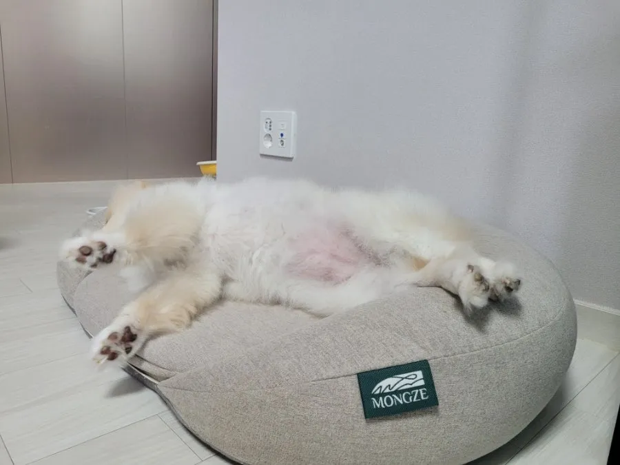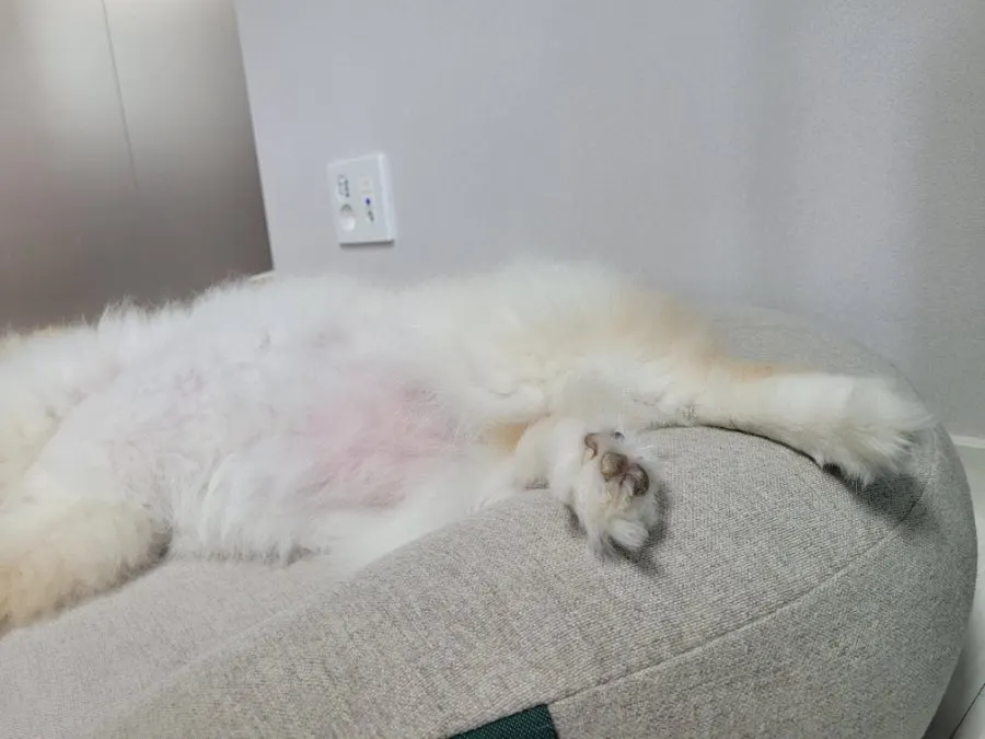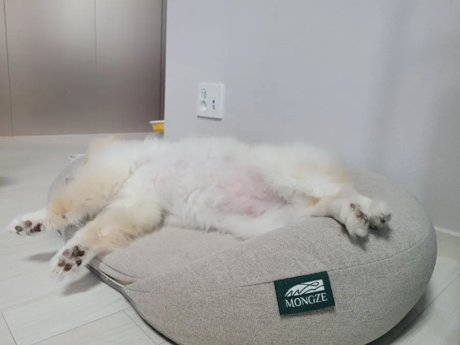 아마도 놀랜 마음을 진정하는 중. 그리고 내가 제일 좋아했던 방석이었는데 이젠 없다