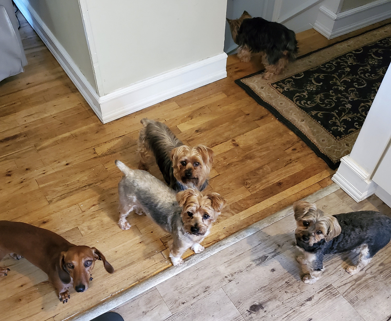 이름을 외우고 강아지마다 얼굴 익히는 데만 한 달은 넘게 걸렸던 것 같다. 헤일리가 웁시, 도도, 캐스퍼의 엄마고 4마리 모두 요크셔테리어였다. '헤일리는 귀가 쫑긋, 뾰족하게 서있고 캐스퍼는 발이 하얀 털로 덮여있어. 도도는 회갈색 털이고 웁시는 검은색 털인 걸로 구분해.'라는 그의 말에 끄덕이며 외운 듯한 시늉을 했지만 시간이 꽤 흐를 때까지 웁시와 도도는 구분이 잘 안됐다. (이제는 구분할 수 있다!)