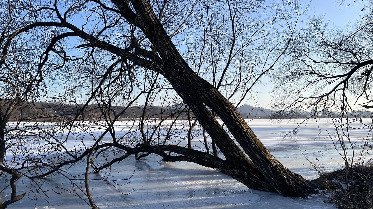 얼어붙은 강 위로 바람만이 낮게 지나가고, 나무들은 잎을 모두 내려놓은 채 서 있었다.