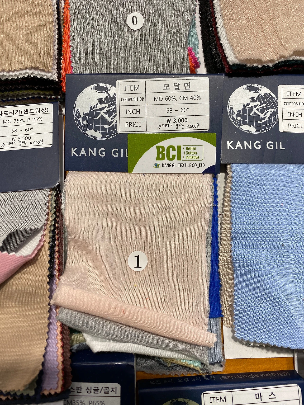 수축이 적고 형태 안전성이 면보다 뛰어난 모달과 면의 혼방 원단은 1마에 3,000원 정도에 구입이 가능하다. 면 100%는 싼 경우 1,000원 이하에도 구입이 가능하다. 저렴한 가격에 부모가 세탁도 하기 편하다면 얼마나 금상천화일까?