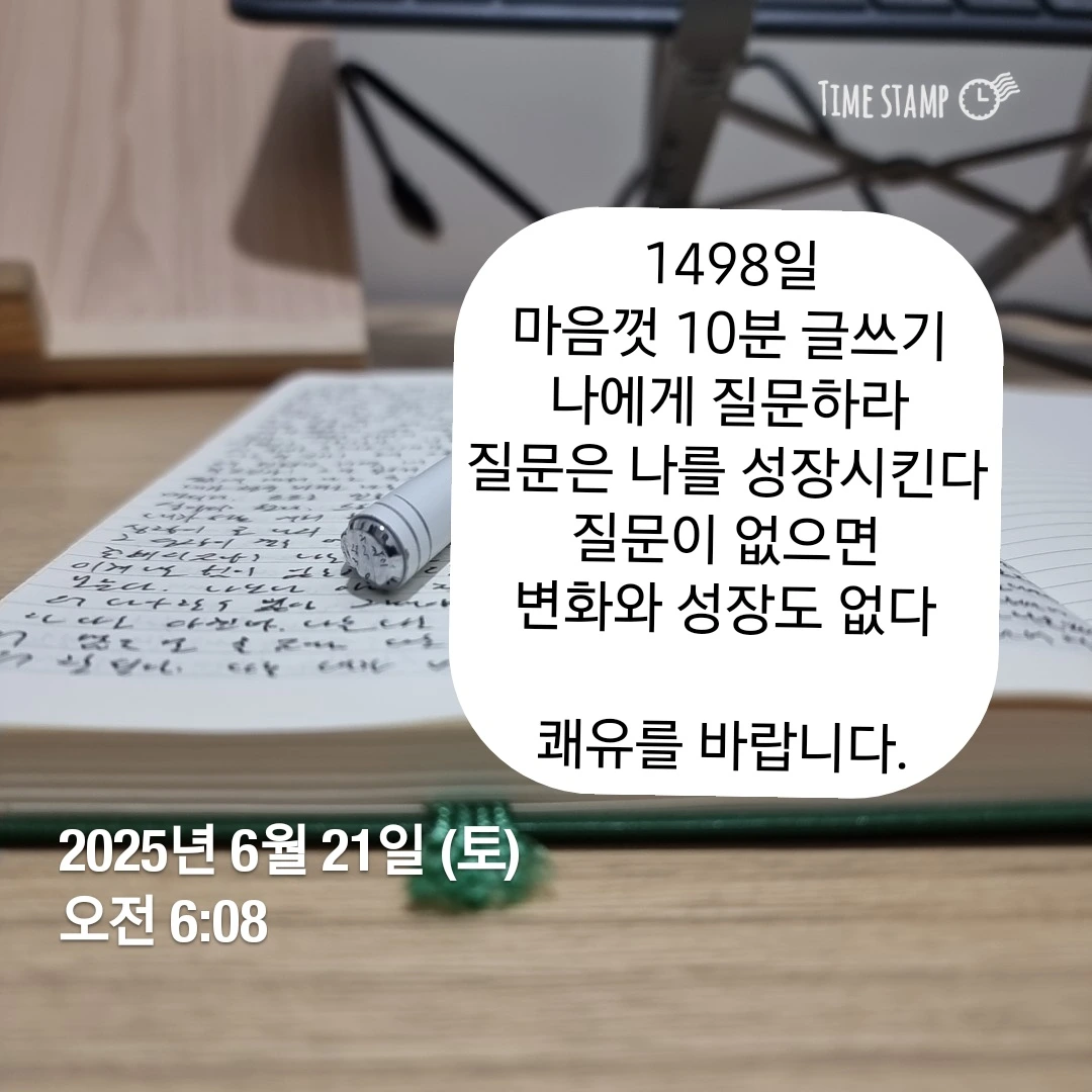 질문이 익숙한 일상을 살았으면 좋겠습니다. 질문을 통해 늘 자기를 의심했으면 좋겠습니다. 의심을 통해 조금 더 나은 걸 선택하면 좋겠습니다. 나은 선택을 내렸다고 스스로 입증하는 삶을 살았으면 좋겠습니다. 이런 과정이 결국 내 삶을 점점 더 나아지게 만드는 과정일 테니까요. 결국, 변화와 성장의 시작은 나에게 던지는 아주 사소한 질문입니다. 질문의 힘을 여러분도 경험해 봤으면 좋겠습니다.