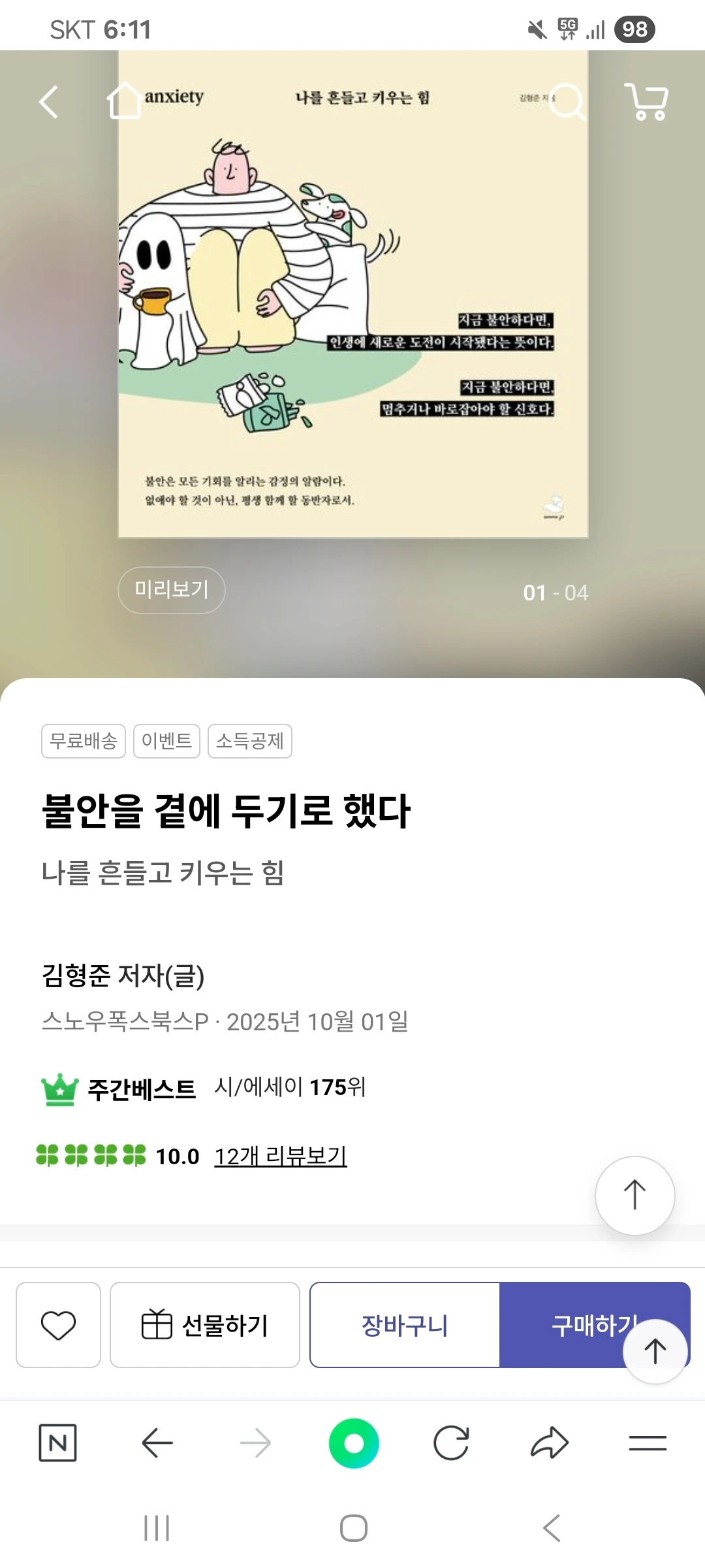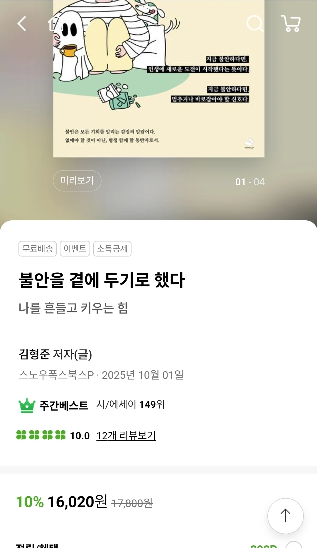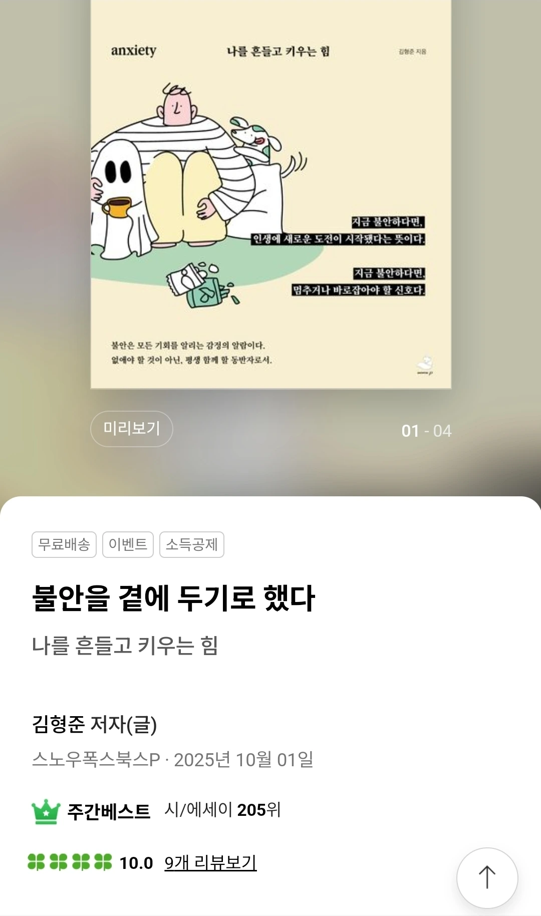 요즘 순위가 바뀌는 걸 지켜보는 재미로 삽니다. 매일 아침 설레는 마음으로 검색해 봅니다. 더 많은 사람이 찾아주길 바랍니다. 더 많은 사람이 불안으로부터 자유로워지면 좋겠습니다. 그래서 더 당당하게 자기 삶을 산다면 바랄 게 없습니다. 그렇게 된다면 저도 책을 쓴 노력을 충분히 보상받았다고 생각할 겁니다. 역주행은 계속될 것입니다. 어느 날 소리소문 없이 사라질 그런 책이 아니기 때문이지요. 저는 제 책의 가치를 믿습니다. 여러분도 꼭 이 책의 가치를 직접 경험해 보면 좋겠습니다.