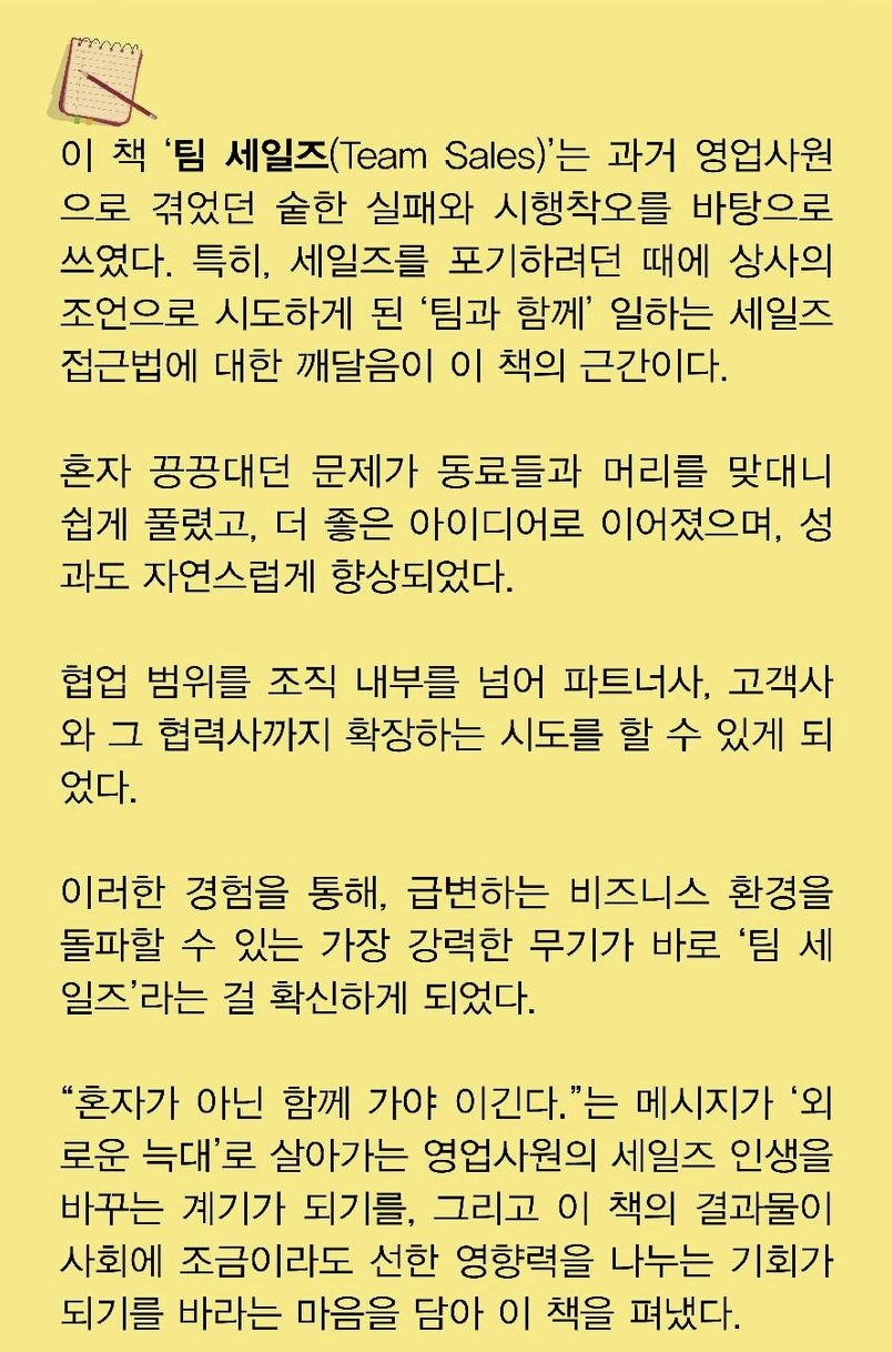 [예약판매] 팀 세일즈 - 세일즈, 함께 가야 이긴다 / 전호석 : 예스24
